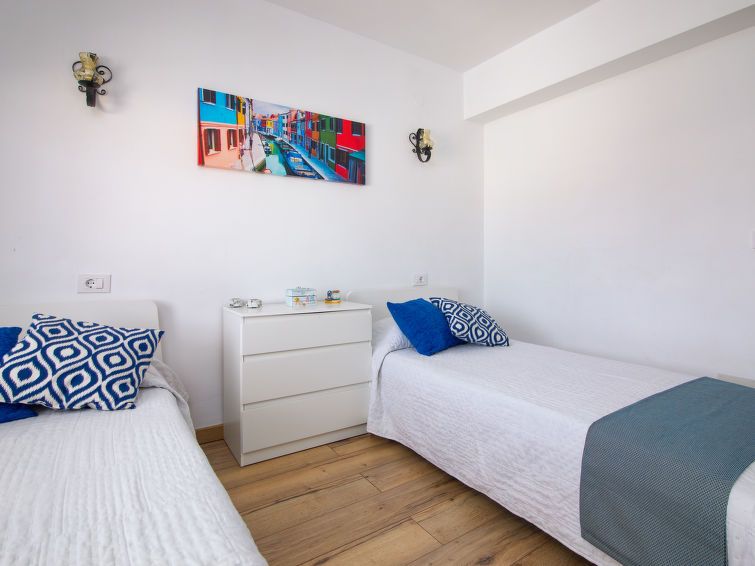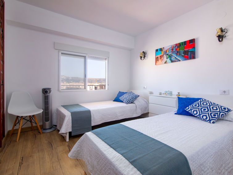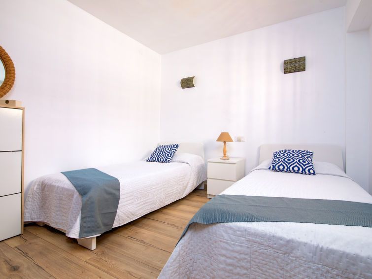 "Strand II", 4-room apartment 100 m2. Spacious and bright, beautiful furnishings: living/dining room with digital TV and fan. Exit to the terrace. 1 room with 1 french bed (160 cm, length 190 cm), fan. 1 room with 2 beds (90 cm, length 190 cm), fan. 1 room with 2 beds (90 cm, length 190 cm), fan.
