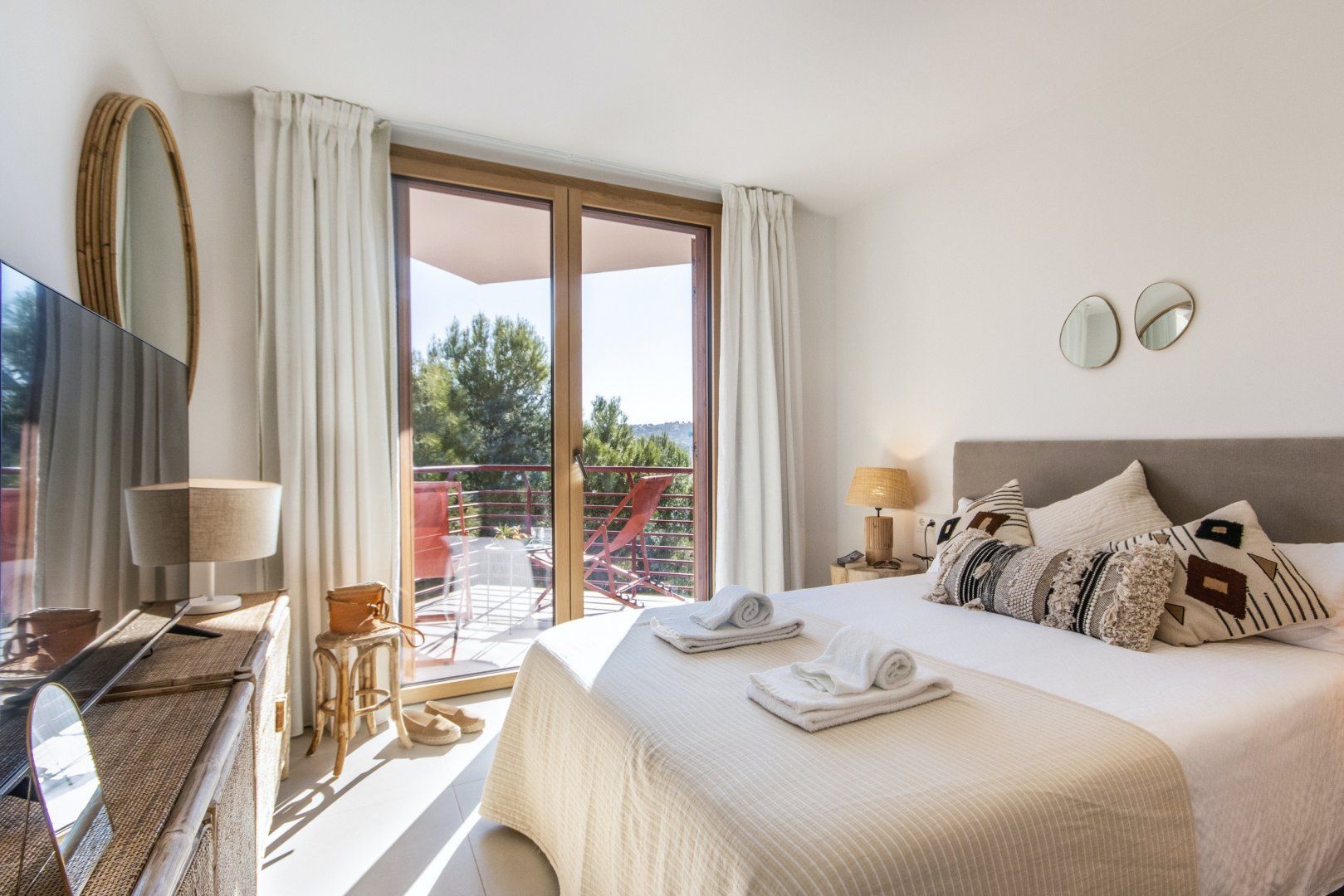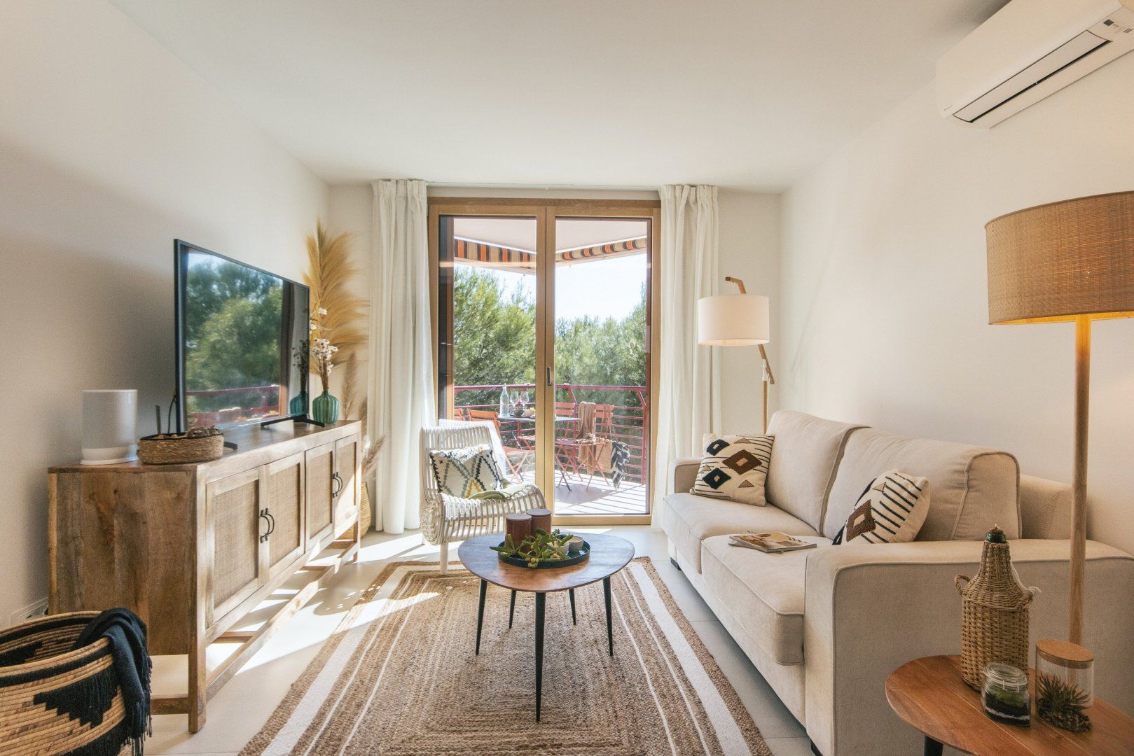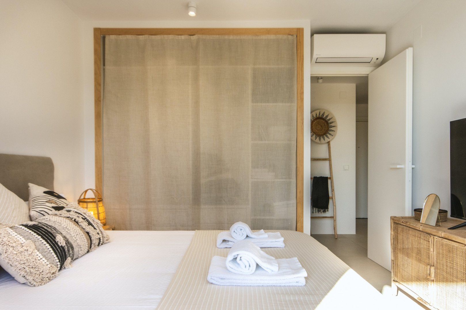 Ideally located a ten-minute walk from Platja de l'Arenal, this boho-chic is all about beach days and relaxing in style. Linen, wood, wicker and concrete make up the interiors, creating a calming environment that’s a pleasure to spend time in. Two balconies call for mornings to be spent outside – tuck into your breakfast accompanied by views overlooking the glittering Mediterranean or puzzle over a crossword as you idly sip an espresso.