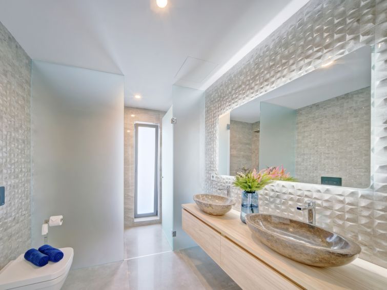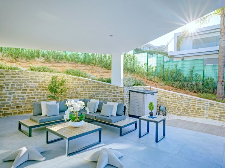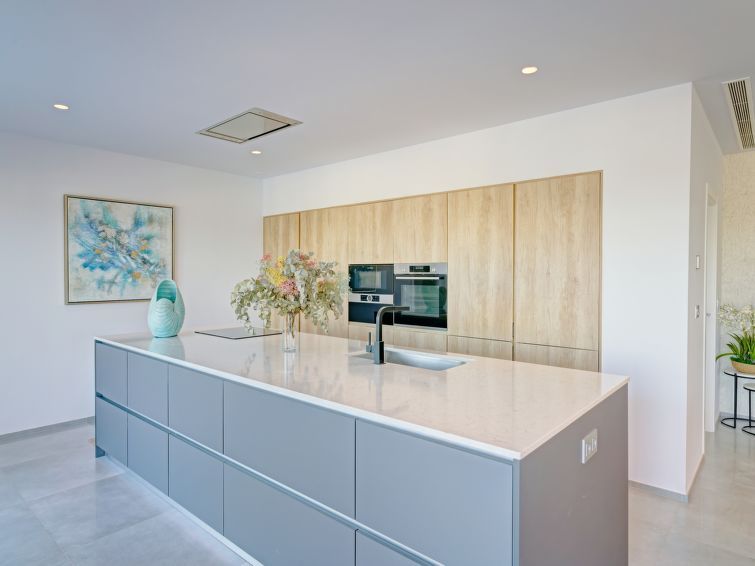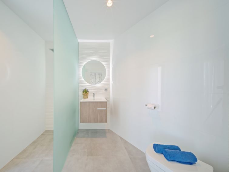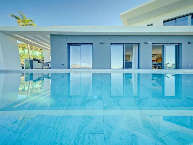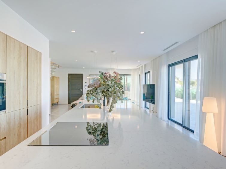 Greeted by Sydney agent with welcome gifts. New villa very clean and well equipped. Perfect bedding and kitchen with everything necessary. Each bedroom has its own bathroom. Air conditioning in all rooms. Large enough swimming pool with partial sea view. Gas barbecue also available. A perfect and relaxing stay. The wifi is just missing in the upstairs rooms. I will book in the future without any problem.
