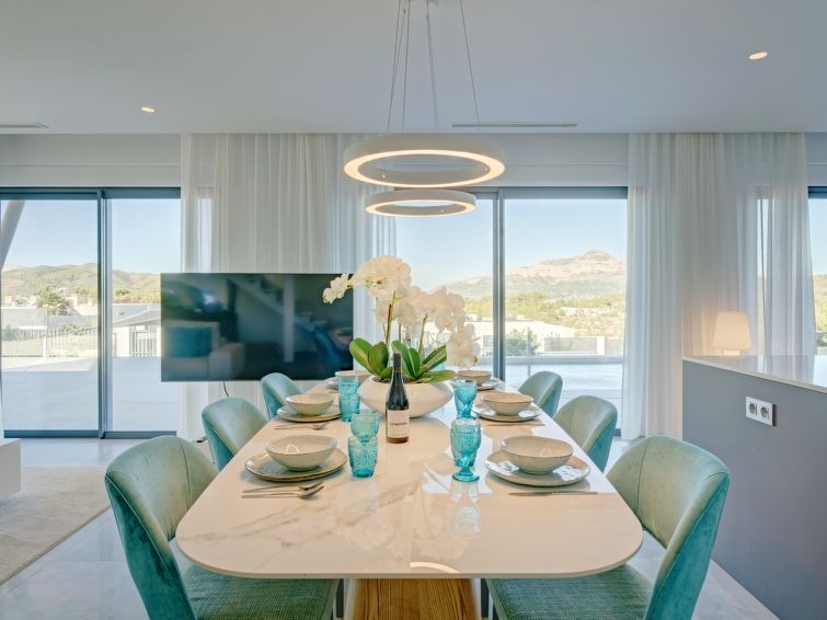 Beautiful, cozy, and well-decorated house. Incredible views of the surrounding mountains and the Jávea lighthouse. Very comfortable. The playground in the garden and the pool are particularly noteworthy. All bedrooms have en-suite bathrooms.
