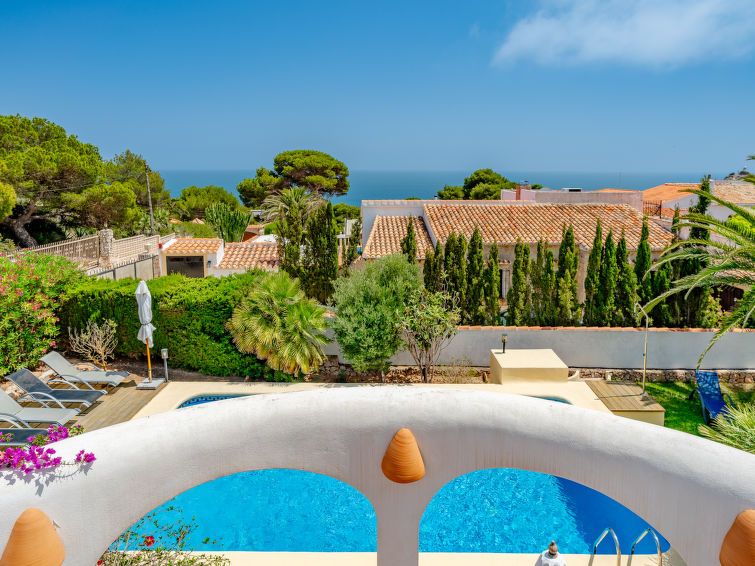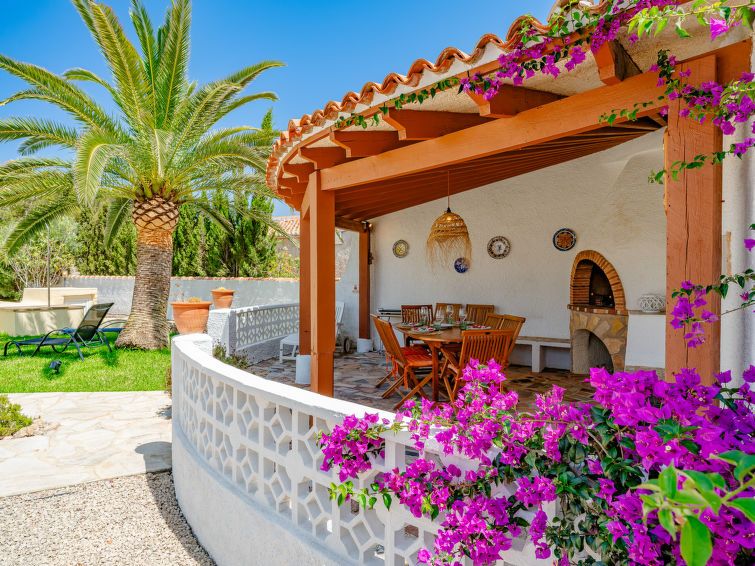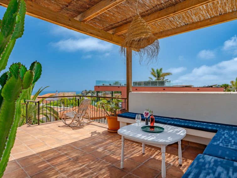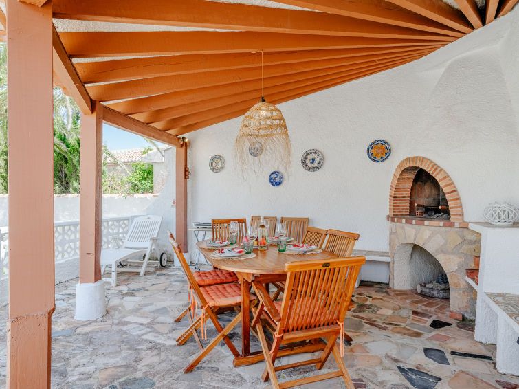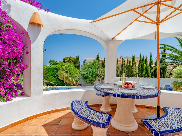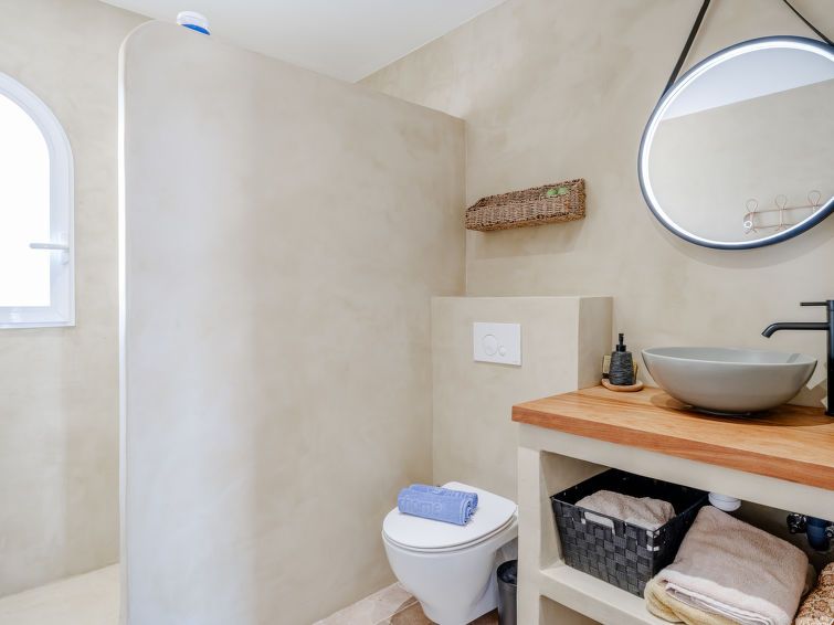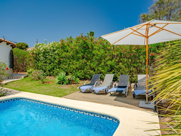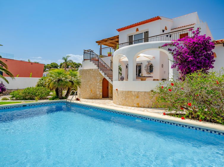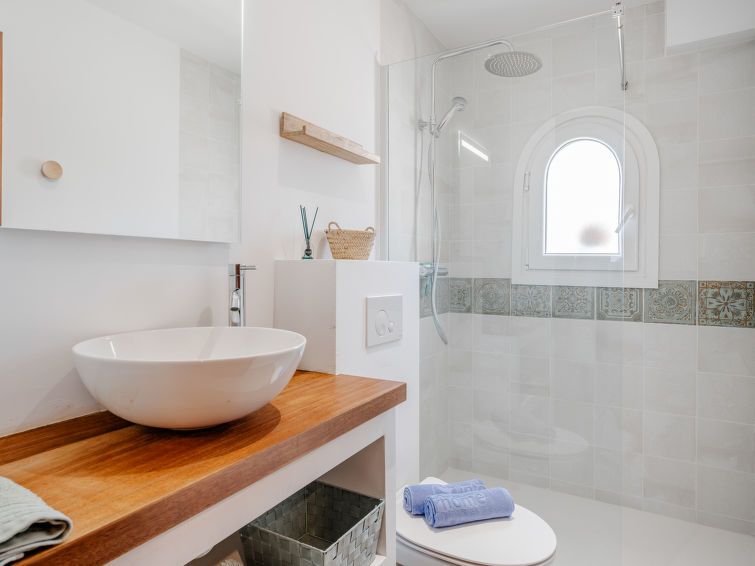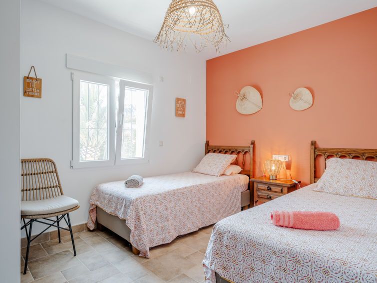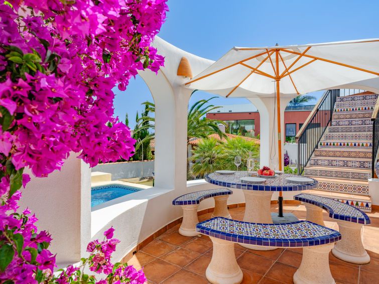 "Villa Los Amigos", 4-room house 250 m2 on 2 levels. Spacious and bright, very beautiful and stylish furnishings: living/dining room with satellite TV, air conditioning and forced-air heating. Exit to the patio, to the swimming pool. 1 room with 1 double bed (2 x 80 cm, length 200 cm), shower/WC, air conditioning and forced-air heating.