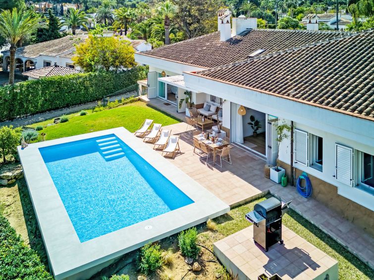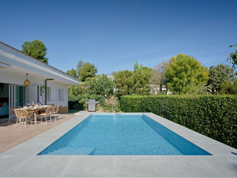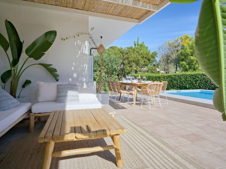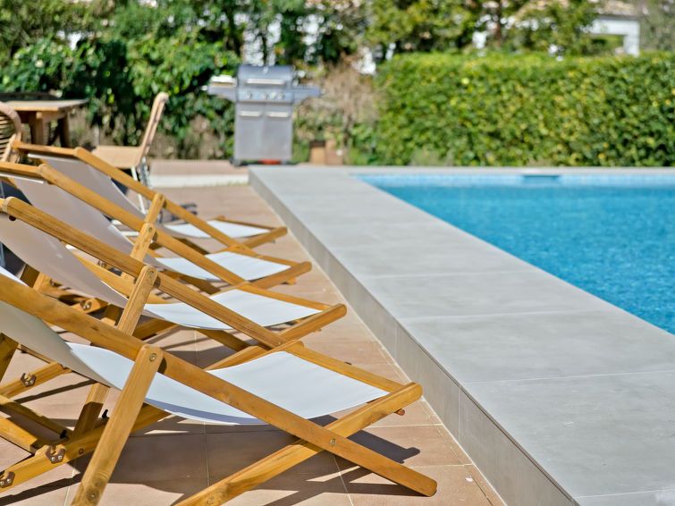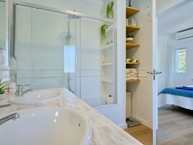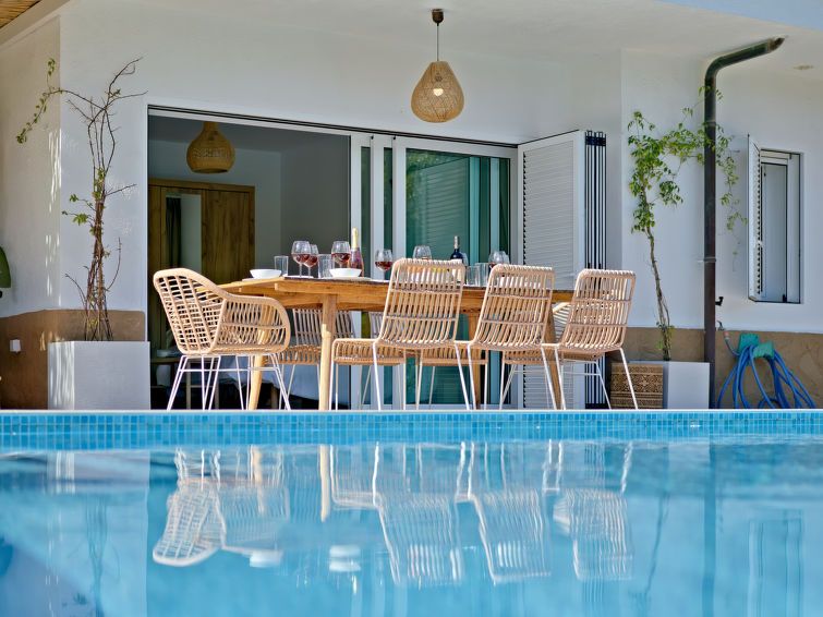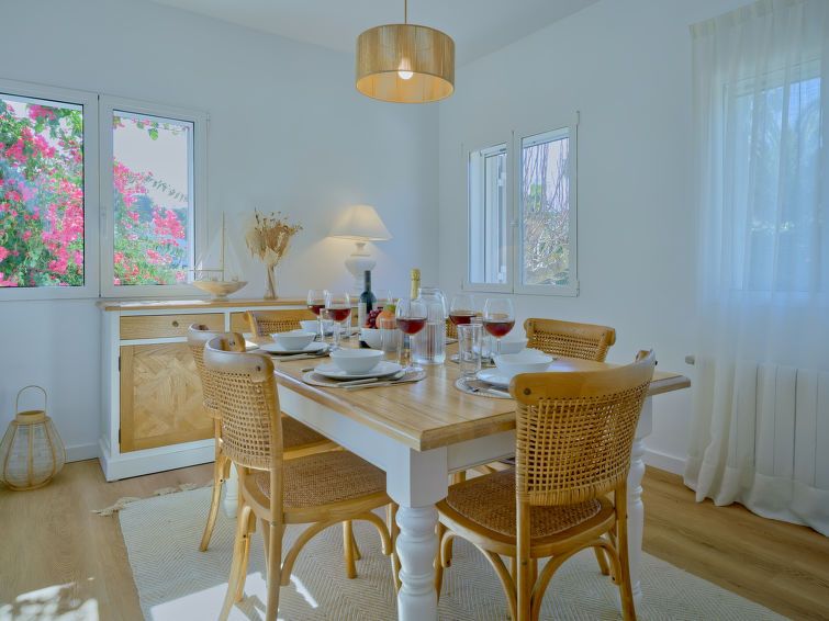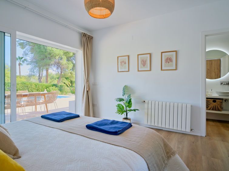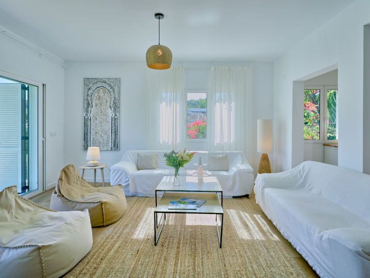 "Villa Mare Nostrum Plus", 5-room villa 200 m2. Spacious and bright, very beautiful and stylish furnishings: living/dining room with fan. Exit to the patio, to the swimming pool. 1 room with 1 french bed (160 cm, length 200 cm), bath/WC, air conditioning and forced-air heating. 1 room with 1 french bed (160 cm, length 200 cm), shower/WC.