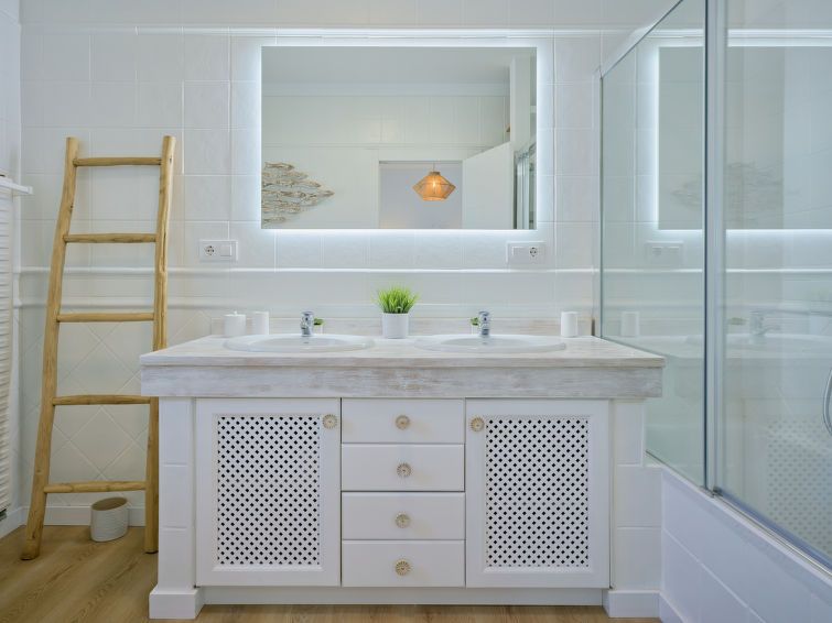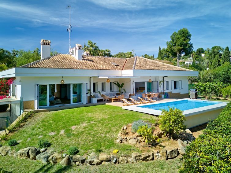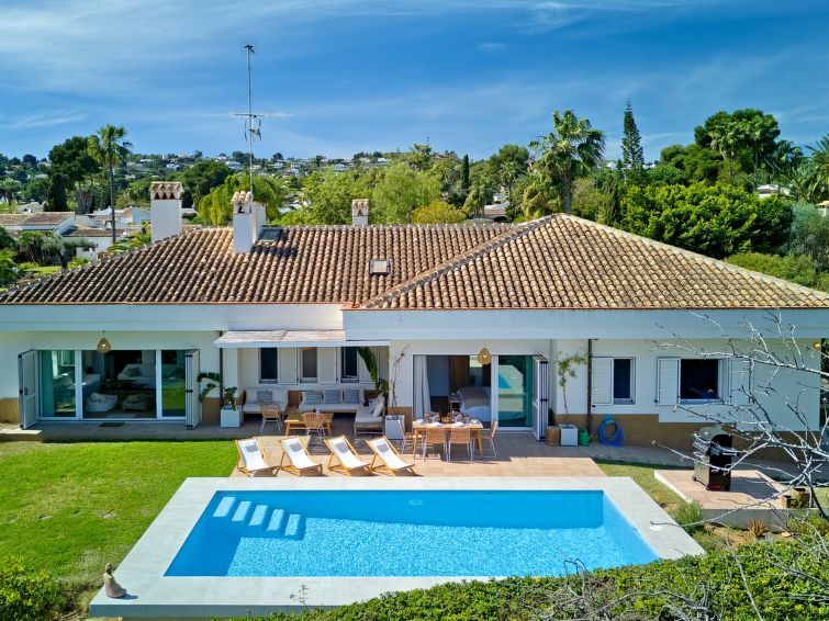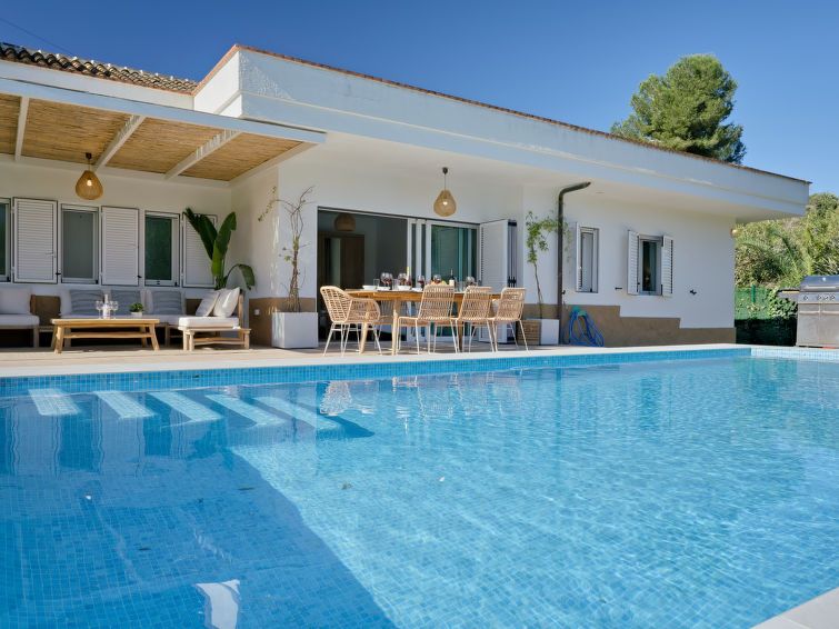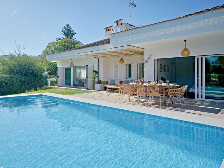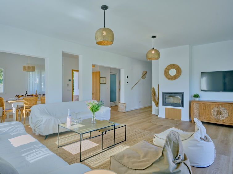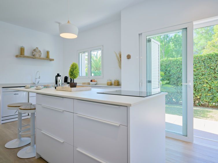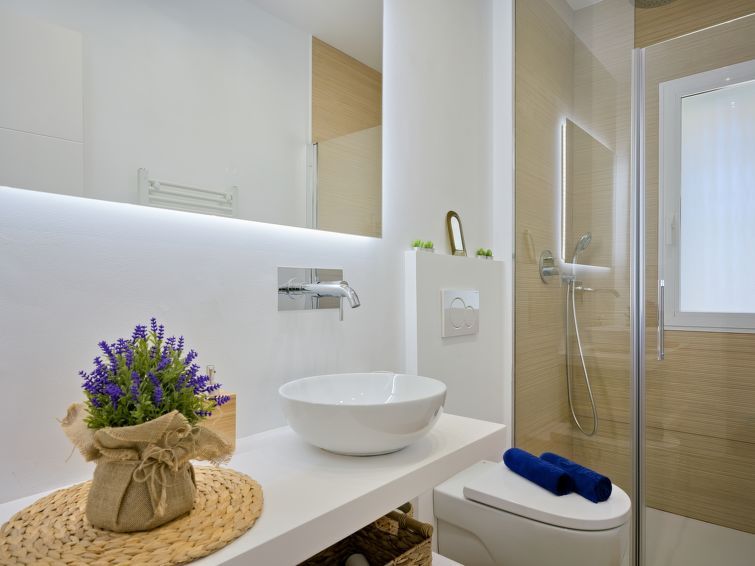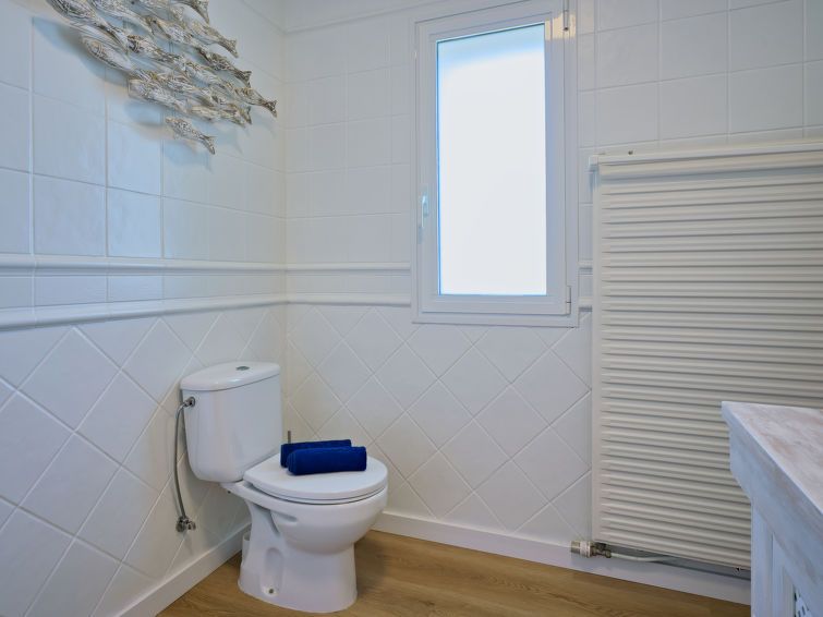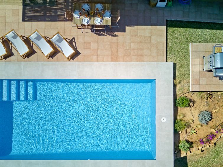 "Villa Mare Nostrum Plus", 5-room villa 200 m2. Spacious and bright, very beautiful and stylish furnishings: living/dining room with fan. Exit to the patio, to the swimming pool. 1 room with 1 french bed (160 cm, length 200 cm), bath/WC, air conditioning and forced-air heating. 1 room with 1 french bed (160 cm, length 200 cm), shower/WC.