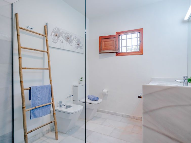 "Villa Pomelo Plus", 5-room house 200 m2 on 2 levels. Spacious and bright, beautiful and stylish furnishings: living/dining room with digital TV, air conditioning and forced-air heating. Exit to the terrace, pergola, to the swimming pool. 1 room with 1 french bed (160 cm, length 200 cm), shower/WC, air conditioning and forced-air heating.