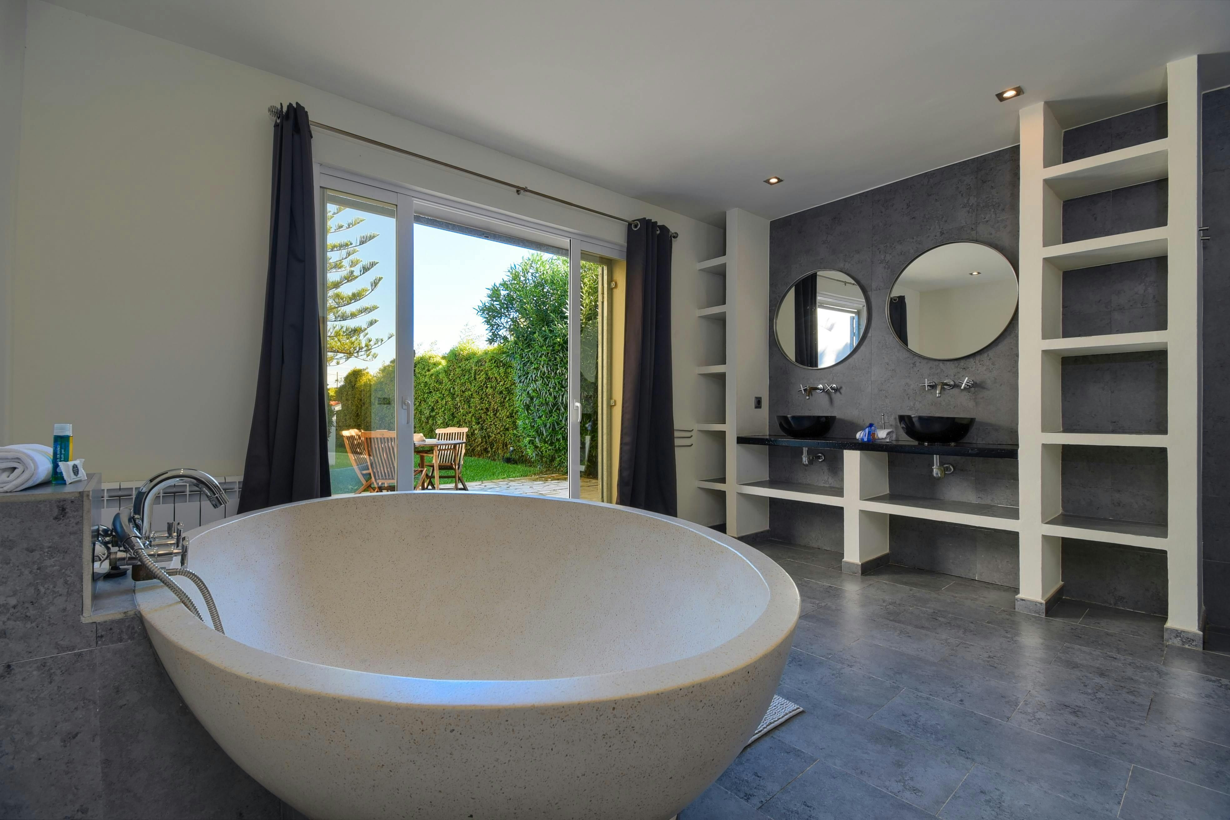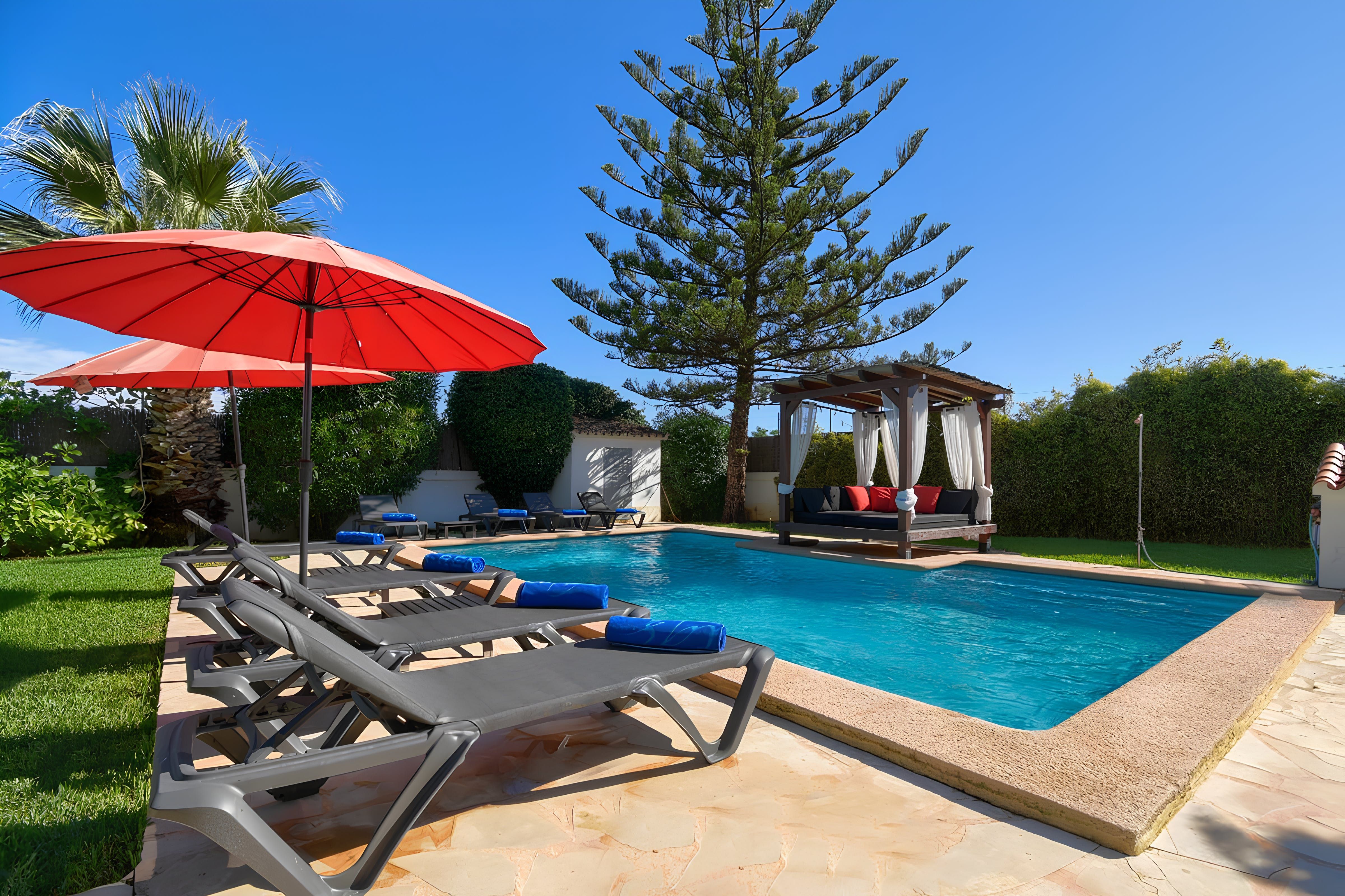 Set within established and oh-so-peaceful gardens, you'd hardly believe this home is so close to Denia's bustle. You're just 500 metres away from the sandy shores of La Marinas and five kilometres from the history-rich streets of Denia – considered one of Costa Blanca's most desirable coastal towns. Back home, this traditional villa is well suited for guests looking for a little extra privacy, with each light-filled bedroom offering a separate bathroom. Though prepare to tussle for the primary bedroom with a ginormous freestanding bath in the en-suite and garden views to boot.