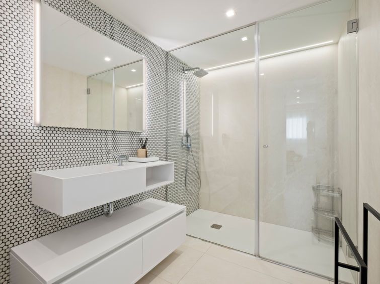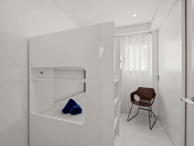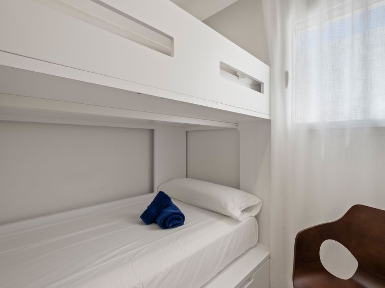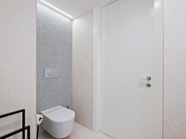 "Blue Infinity 4", 4-room apartment 100 m2, on the upper floor. Object suitable for 4 adults + 2 children. Spacious and bright, beautiful and modern furnishings: open living/dining room with digital TV, air conditioning and forced-air heating. Exit to the terrace. 1 room with 1 french bed (160 cm, length 200 cm), shower/WC, double hand-basin, TV, air conditioning and forced-air heating.