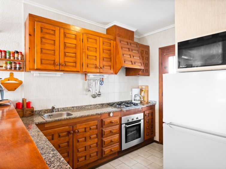 "Casita Blanca", 4-room terraced house 90 m2 on 2 levels. Beautiful and cosy furnishings: living/dining room with satellite TV and air conditioning. Exit to the veranda. 1 room with 1 french bed (1 x 140 cm, length 200 cm). 1 room with 1 french bed (1 x 140 cm, length 200 cm). Open kitchen (4 hot plates, oven, Gas stove, toaster, kettle, microwave, freezer, electric coffee machine).