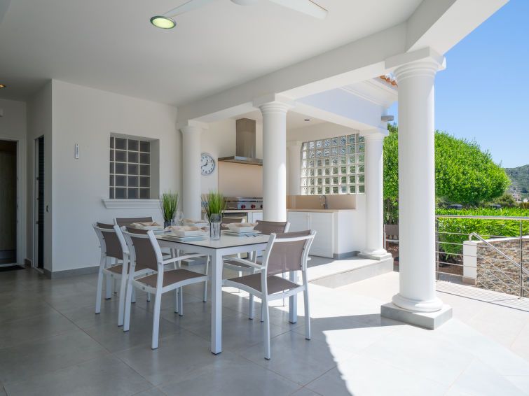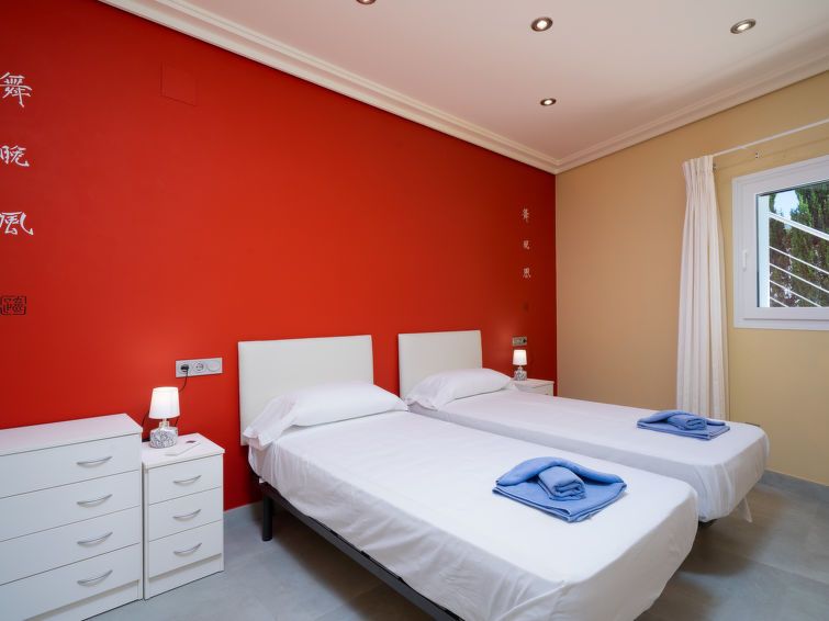 "El Portet", 7-room villa 350 m2 on 2 levels. Spacious, comfortable furnishings: living/dining room with satellite TV and air conditioning. Exit to the garden, to the terrace, to the swimming pool. Office. 1 room with 1 french bed (150 cm, length 200 cm), air conditioning. 1 room with 1 french bed (150 cm, length 200 cm), air conditioning.