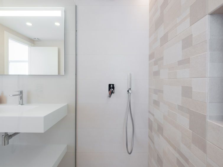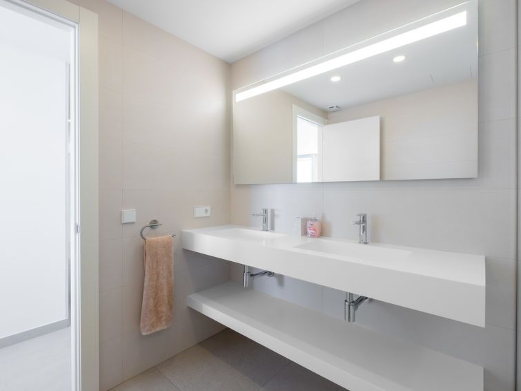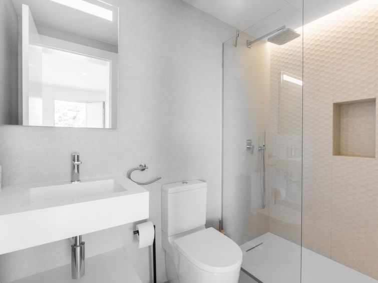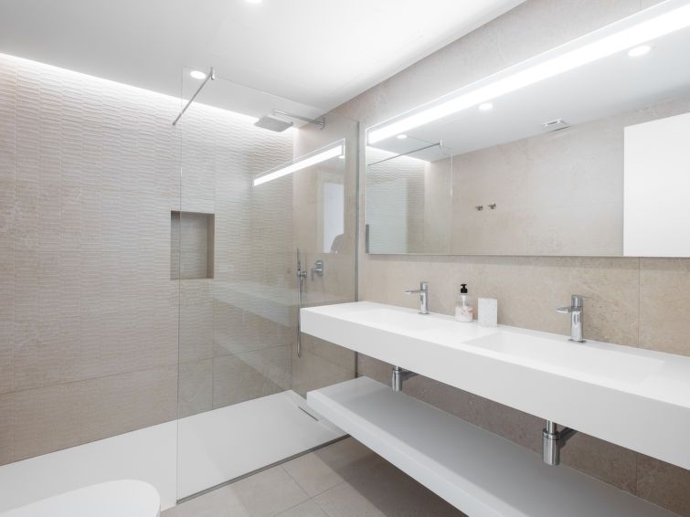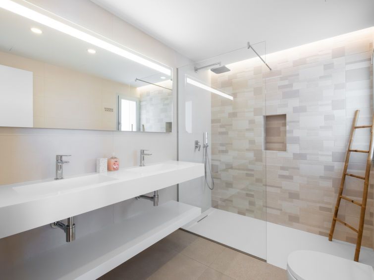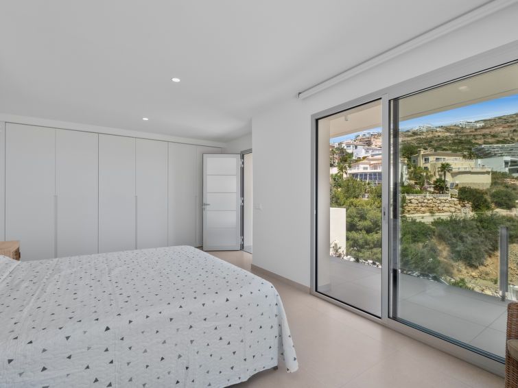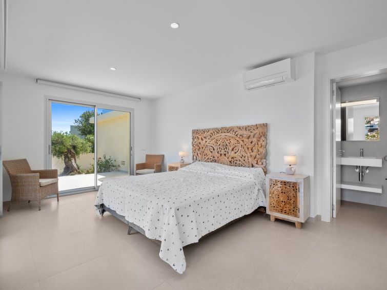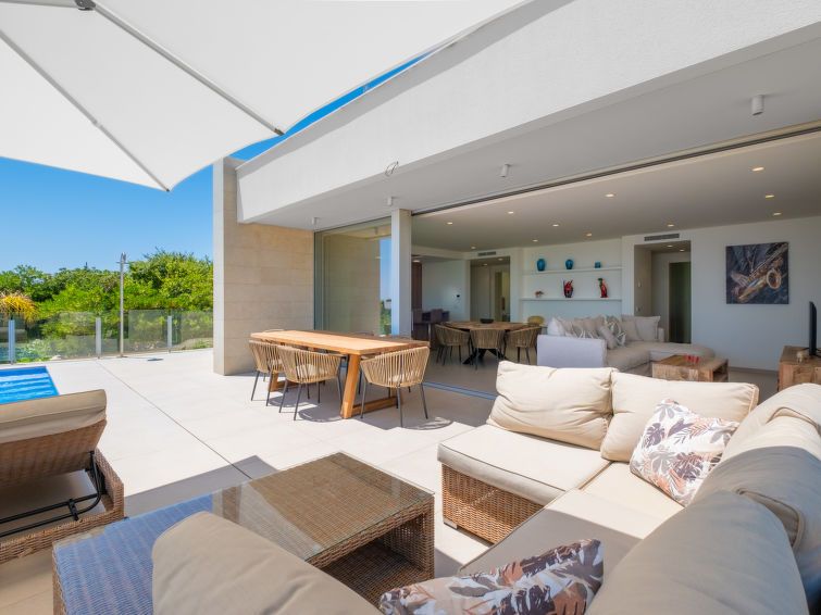 "Iris", 5-room villa 229 m2 on 2 levels. Spacious and bright, very comfortable and beautiful furnishings: open living/dining room with panoramic window with digital TV, air conditioning and forced-air heating. Exit to the terrace, to the swimming pool. 1 room with 1 french bed (1 x 180 cm, length 200 cm), shower/WC, double hand-basin, air conditioning and forced-air heating.