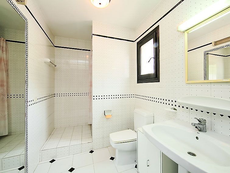 "Isla Bonita", 9-room house 310 m2 on 2 levels. Spacious, practical and cosy furnishings: living/dining room with open-hearth fireplace and satellite TV. Exit to the terrace. 2 double bedrooms. Kitchen (oven, dishwasher, grill) with dining table. Bath/bidet/WC, shower/bidet/WC, 2 Baths/showers/WC.