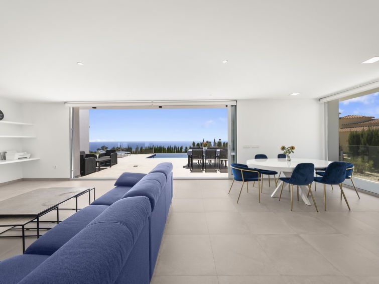 "Lirios View", 6-room villa 260 m2. Object suitable for 6 adults + 2 children. Spacious and bright, comfortable and modern furnishings: open large living/dining room with panoramic window with digital TV, air conditioning and forced-air heating. Exit to the terrace, to the swimming pool.
