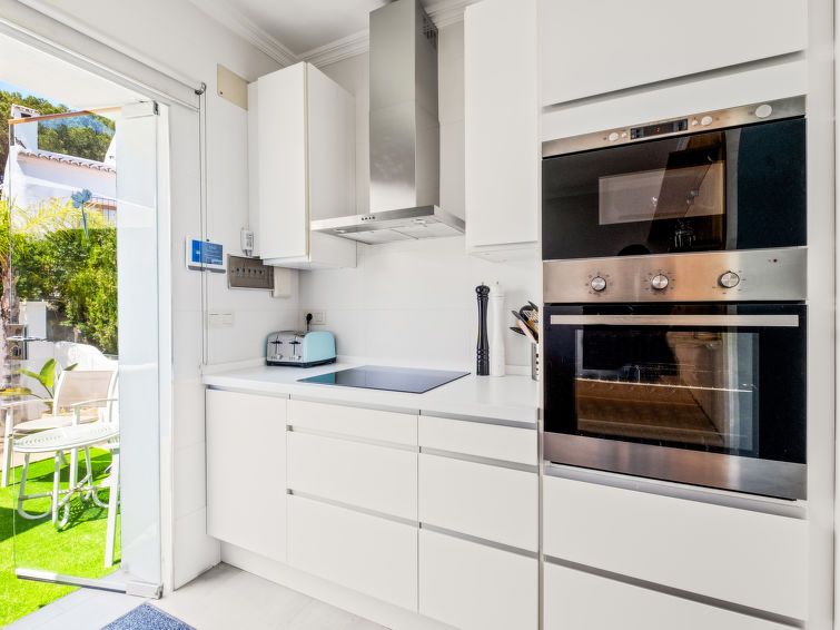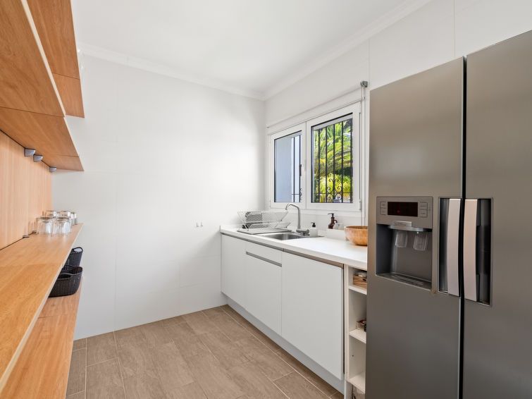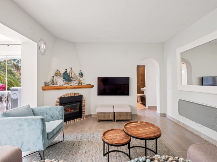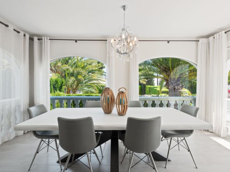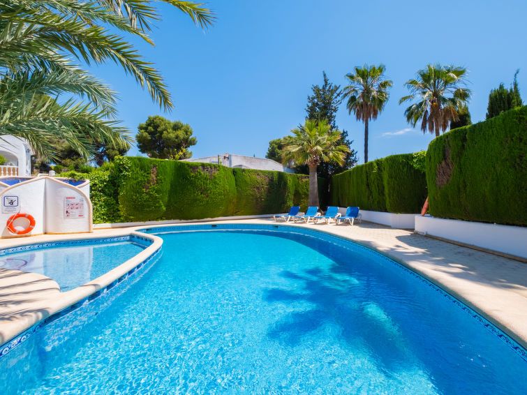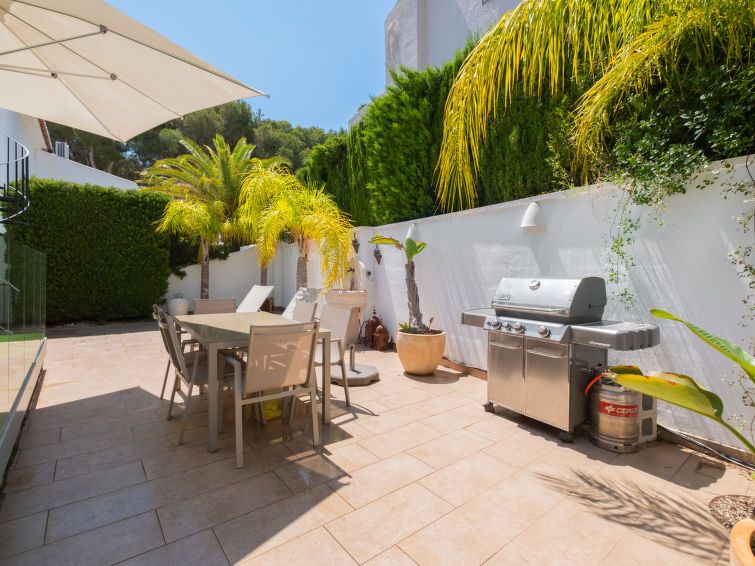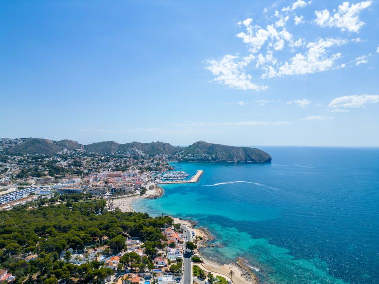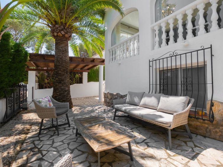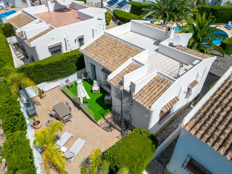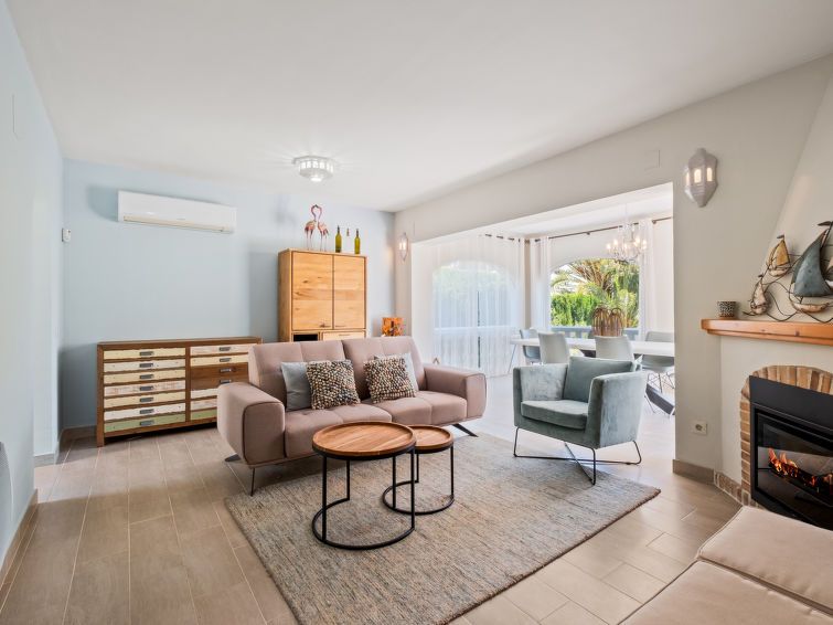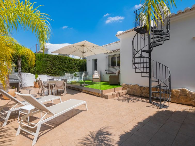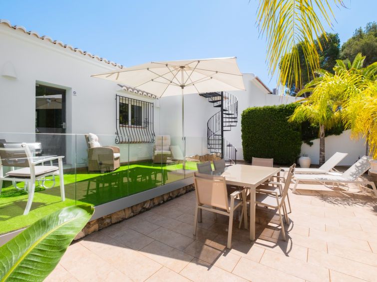 "Los Limoneros de Moraira", 3-room house 72 m2. Spacious and bright, beautiful and modern furnishings: open living/dining room with TV, air conditioning and forced-air heating. Exit to the garden, to the terrace. 1 room with 1 french bed (1 x 180 cm, length 200 cm), satellite TV, air conditioning, fan and forced-air heating.