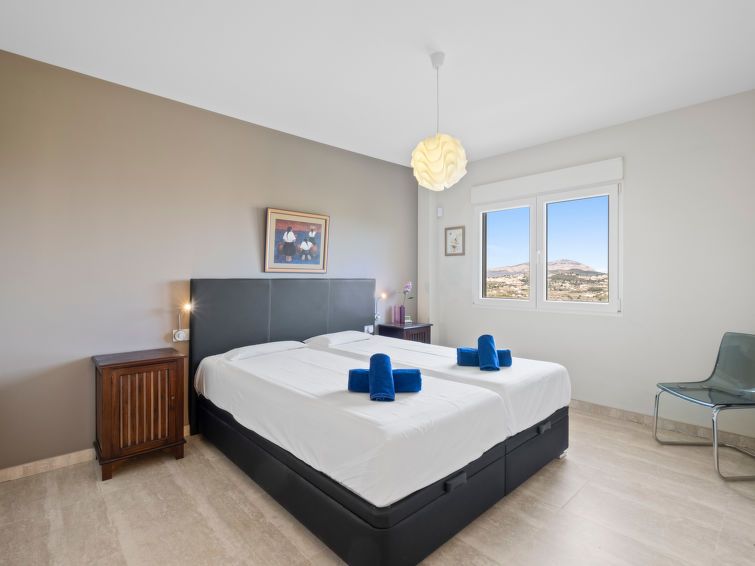 The house is located on top of the mountain with a fantastic view. It is in very good condition. A lovely lounge area by the clean pool with an awning and a sheltered seating/dining area is available. There's a small golf course and a boules court. Access to the pitch is difficult with a larger vehicle. Good room layout, beautiful furnishings, and a well-equipped kitchen. Many thanks to the Interhome Moraira team.