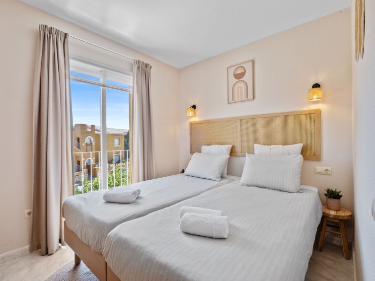 "Pueblo de la Paz", 3-room apartment 62 m2 on 1st floor. Spacious and bright, renovated in 2025, comfortable and beautiful furnishings: living/dining room with satellite TV, digital TV, air conditioning and forced-air heating. Exit to the terrace. 1 room with 1 double bed. 1 room with 2 beds.