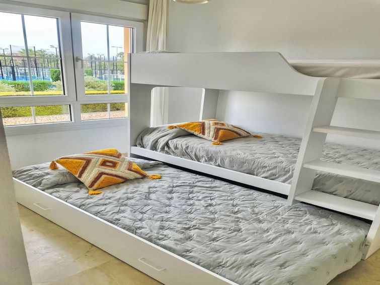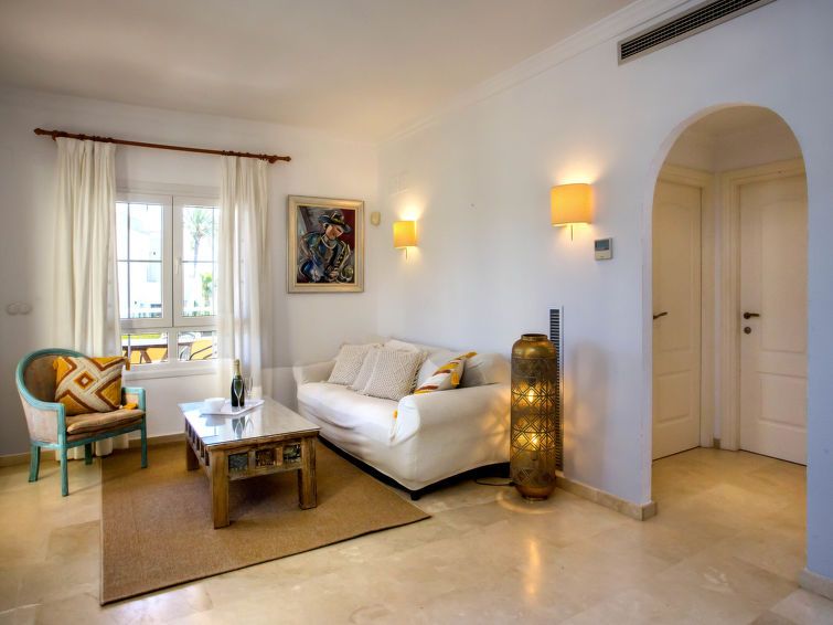 "Golf & Mar", 3-room apartment 90 m2. Spacious and bright, very comfortable and stylish furnishings: living/dining room with digital TV, air conditioning and forced-air heating. Exit to the terrace. 1 room with Dressing room with 1 french bed (150 cm, length 200 cm), bath/bidet/WC and digital TV.