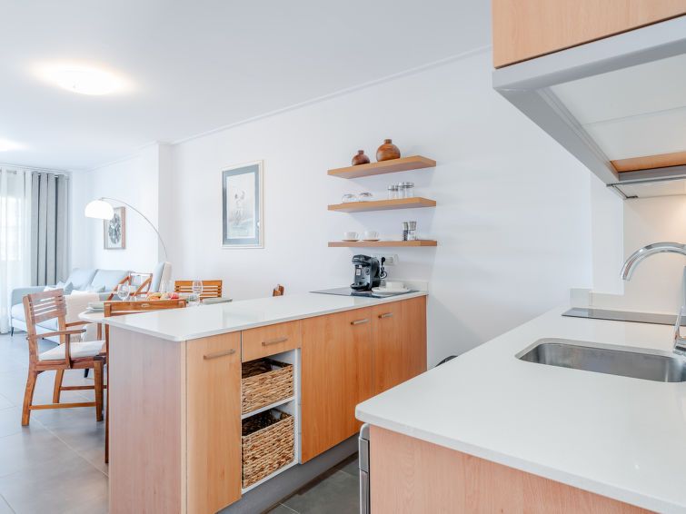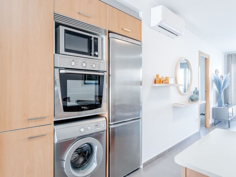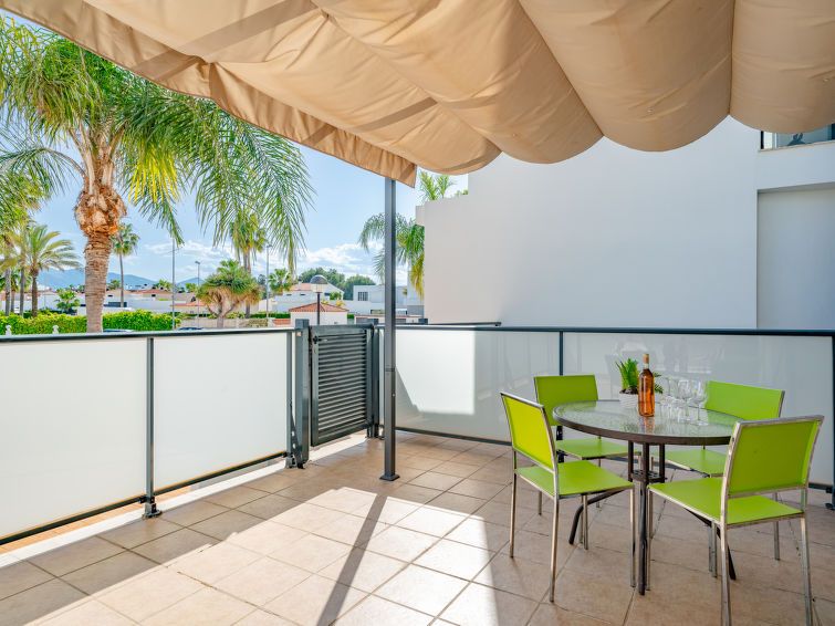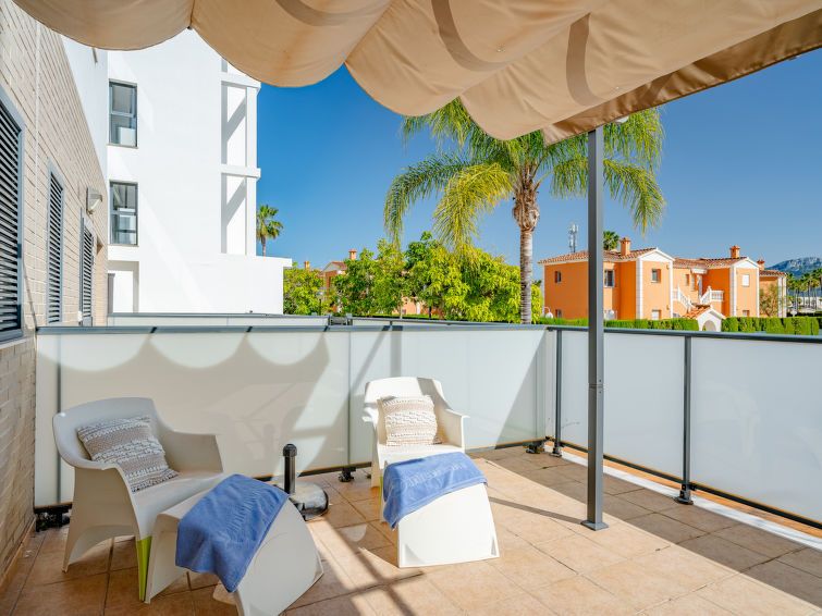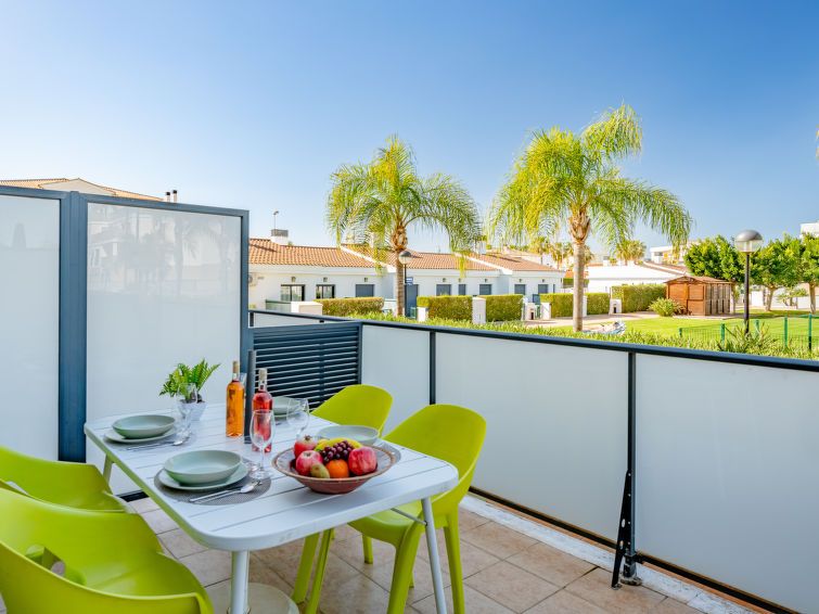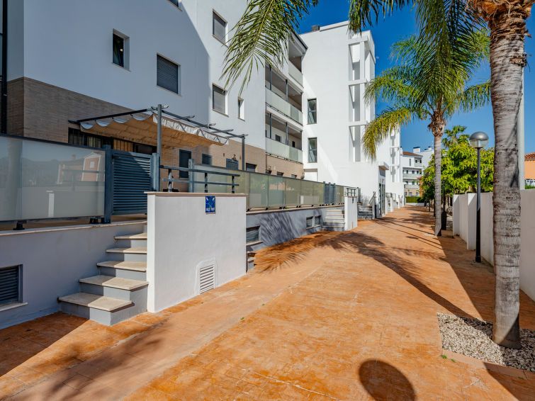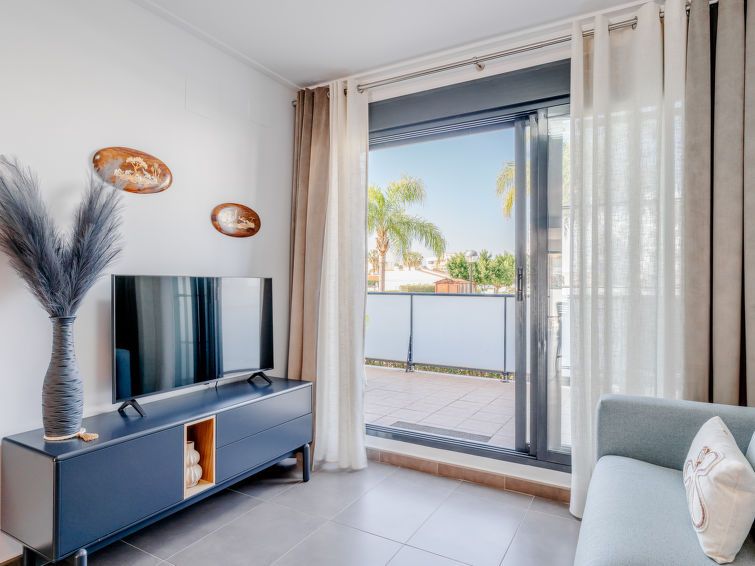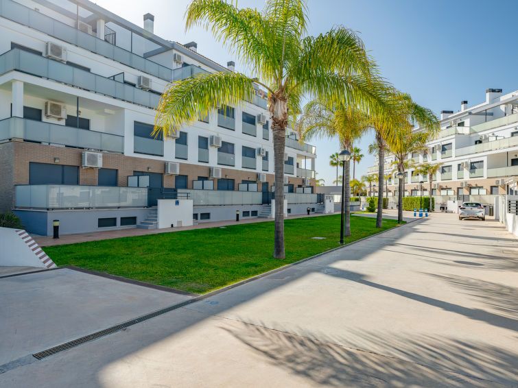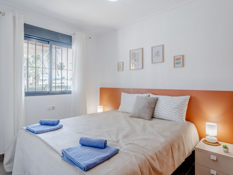 "Las Dunas Oliva Nova", 3-room apartment 60 m2. Spacious, very comfortable and stylish furnishings: living/dining room with satellite TV, air conditioning and forced-air heating. Exit to the terrace, pergola. 1 room with 1 french bed (160 cm, length 200 cm), shower/WC, air conditioning and forced-air heating.