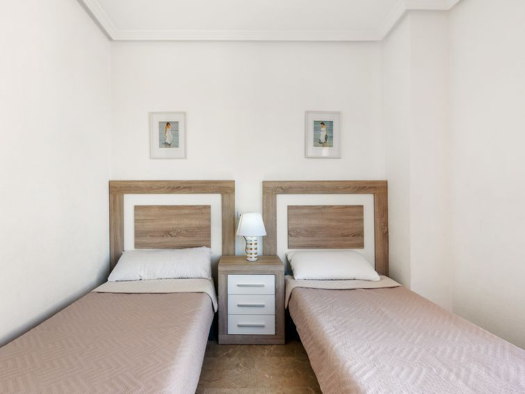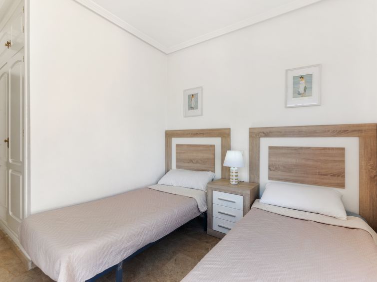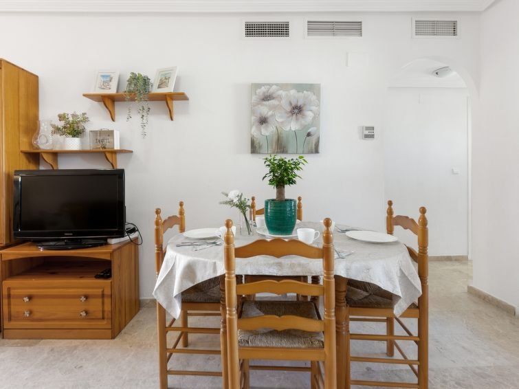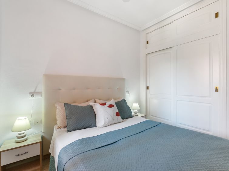 "Las Calitas Bloque III", 3-room apartment 60 m2 on 1st floor. Simple furnishings: living/dining room with 1 double sofabed (130 cm, length 190 cm), dining table, digital TV, flat screen, radio, air conditioning and forced-air heating. Exit to the loggia. 1 room 12 m2 with 1 double bed (135 cm, length 190 cm), bath/bidet/WC, air conditioning and forced-air heating.