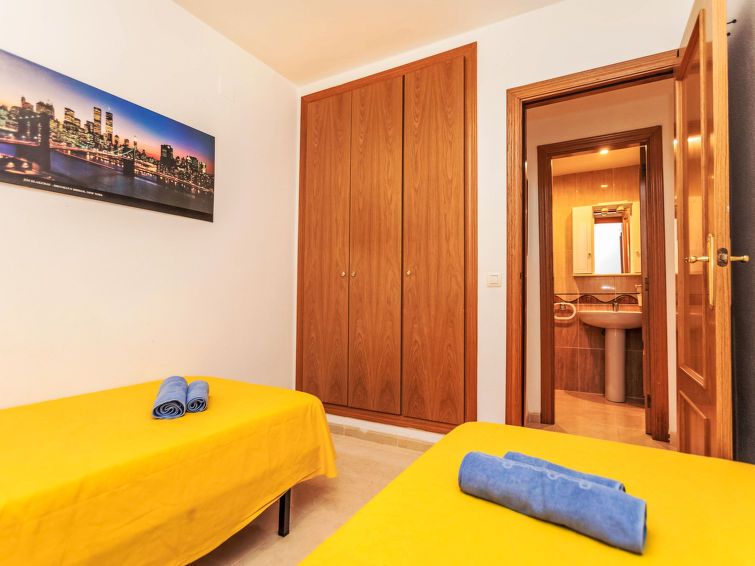 "Acapulco I -1º linea", 3-room apartment 60 m2 on 3rd floor. Practical and comfortable furnishings: living/dining room with dining table, digital TV, flat screen, air conditioning and forced-air heating. Exit to the terrace. 1 double bedroom with 1 french bed (150 cm, length 190 cm), bath/bidet/WC.