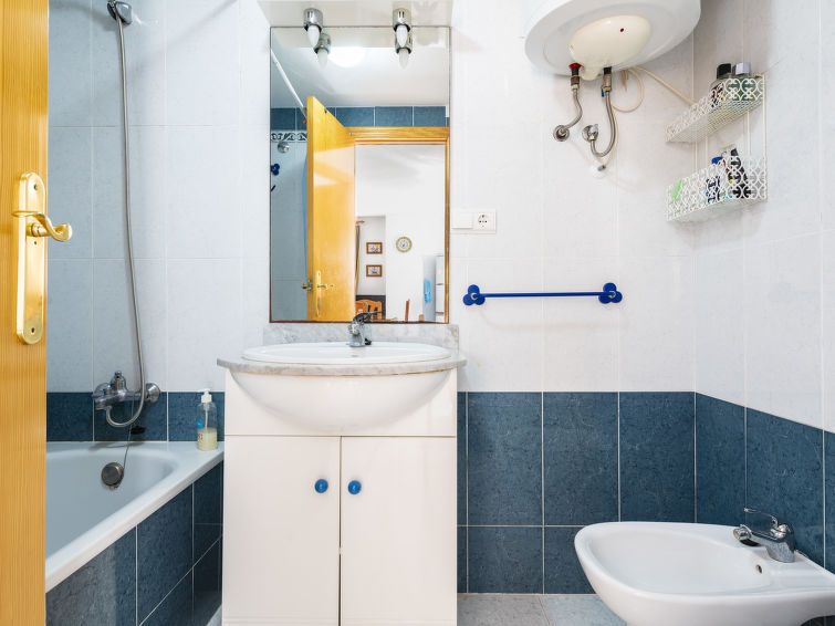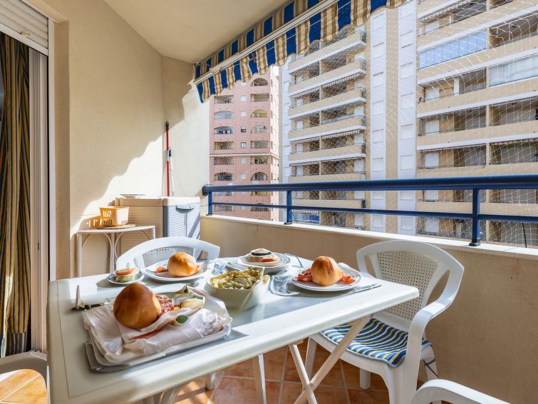 "Bonaire IV - La Concha", 2-room apartment 45 m2 on 4th floor. Practical and comfortable furnishings: living/dining room with dining table, digital TV, flat screen, air conditioning and forced-air heating. Exit to the terrace. 1 room with 1 french bed (135 cm, length 190 cm). Open kitchen (oven, 4 ceramic glass hob hotplates, toaster, microwave, freezer, electric coffee machine).