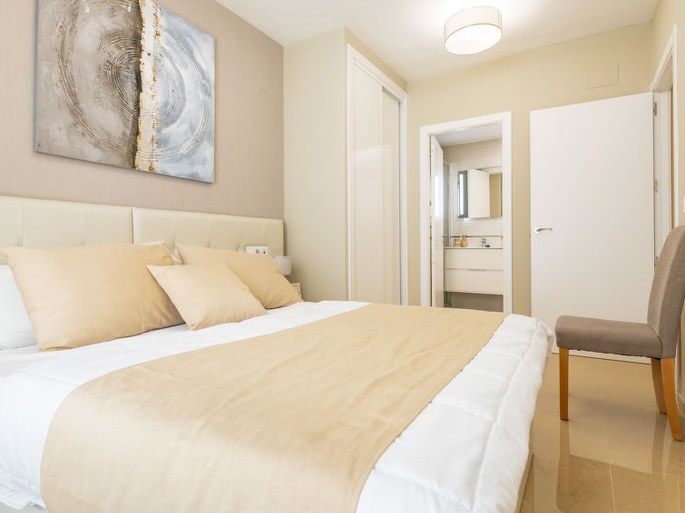 "Ciudad Jardin", 3-room apartment 80 m2 on 3rd floor. Practical and comfortable furnishings: living/dining room with dining table, digital TV, flat screen, air conditioning and forced-air heating. Exit to the terrace. 1 room with 1 french bed (150 cm, length 200 cm), shower/bidet/WC.