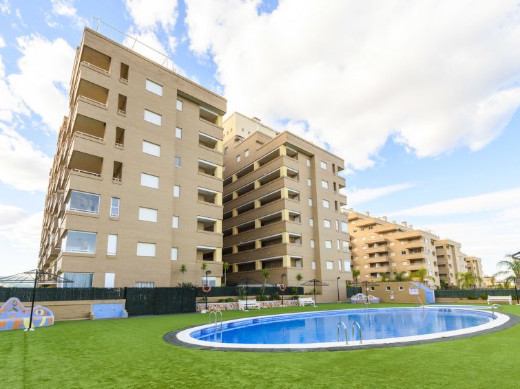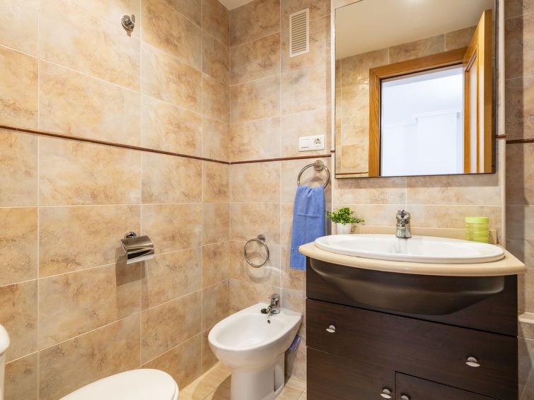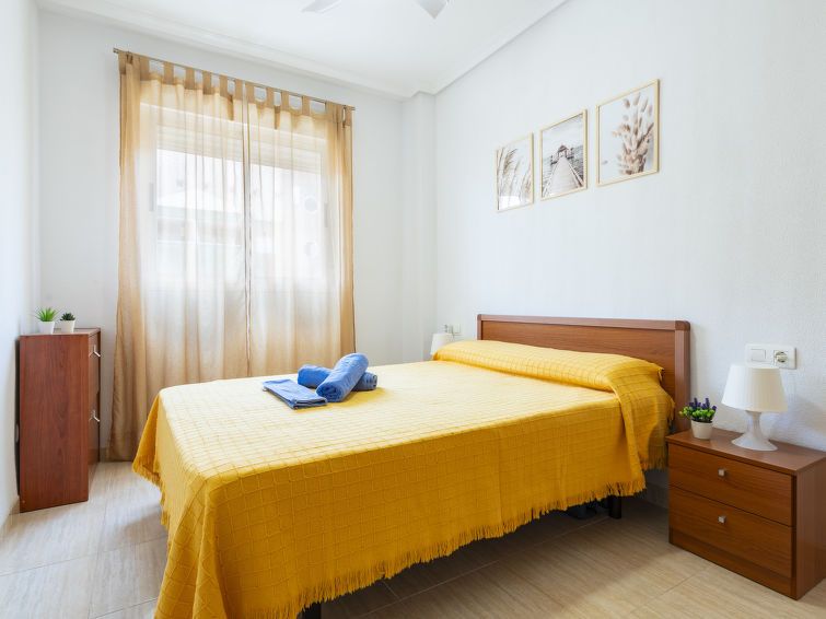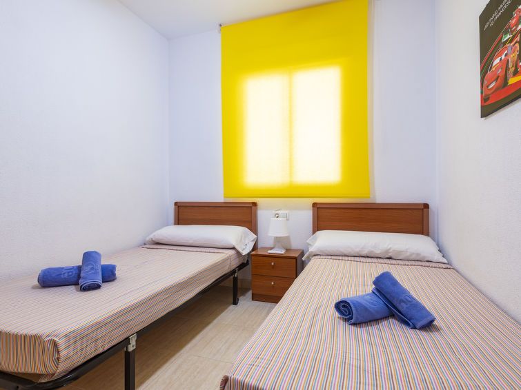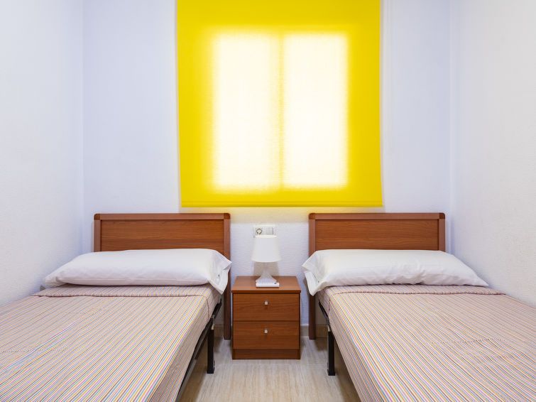 "Costa Caribe III", 3-room apartment 63 m2 on 6th floor. Bright, practical and comfortable furnishings: living/dining room with dining table, digital TV, flat screen and air conditioning. Exit to the terrace. 1 room with 1 french bed (135 cm, length 190 cm). 1 room with 2 beds (90 cm, length 190 cm).