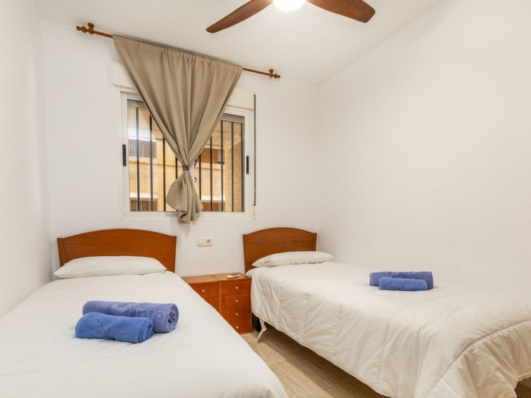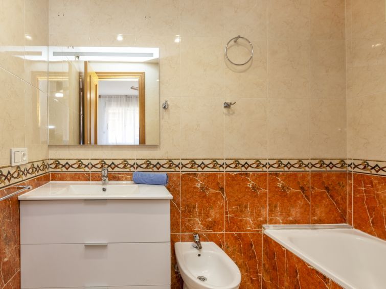 3-room apartment 60 m2 on 7th floor. Bright, simple and practical furnishings: living/dining room with digital TV. Exit to the balcony. 1 room with 1 french bed (1 x 135 cm, length 190 cm), bath/bidet/WC. 1 room with 2 beds (90 cm, length 190 cm). Small kitchen in the entrance (oven, 4 ceramic glass hob hotplates, microwave, electric coffee machine, Capsules for coffee machine (Dolce Gusto) extra) with boiler (80 litres).