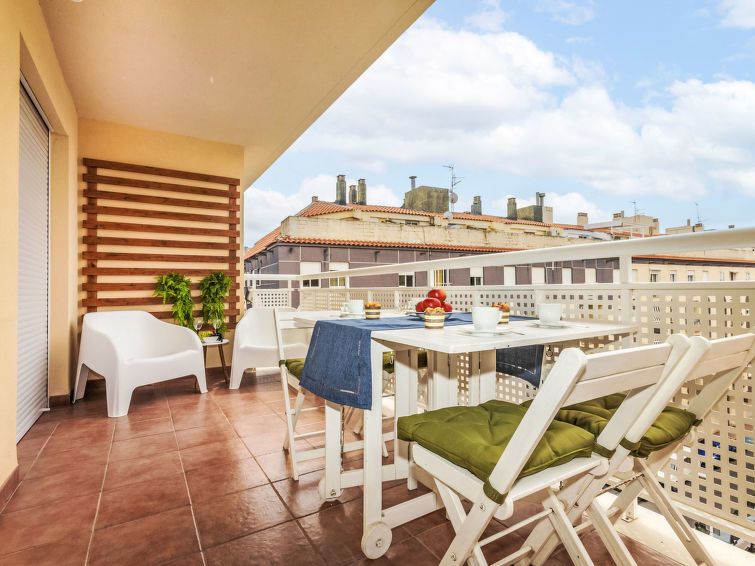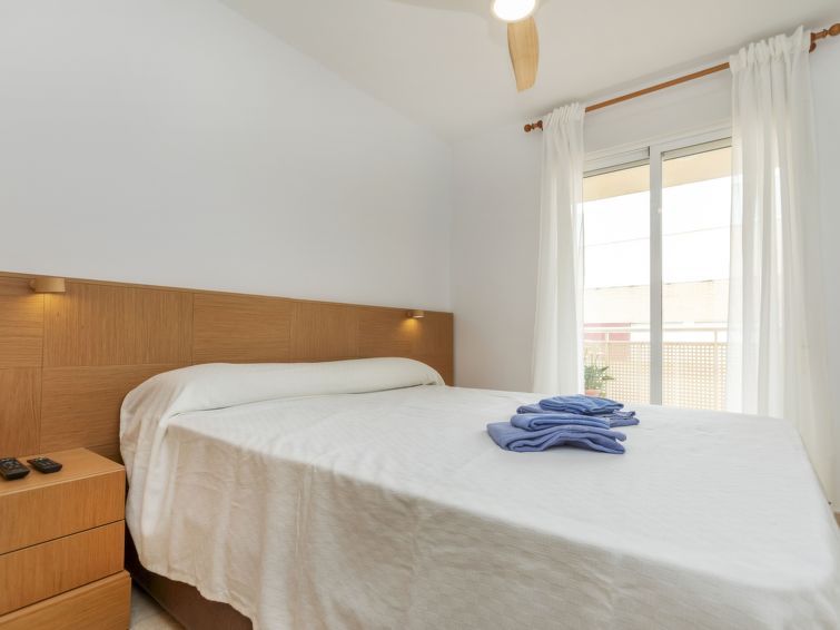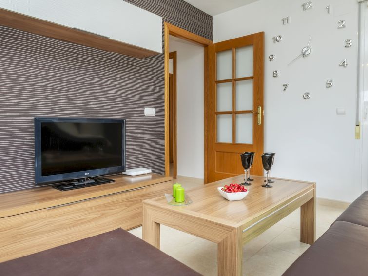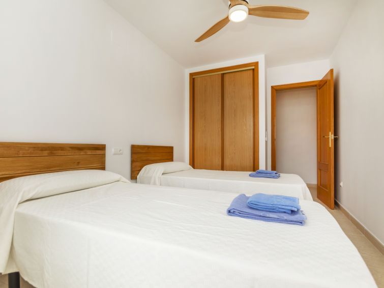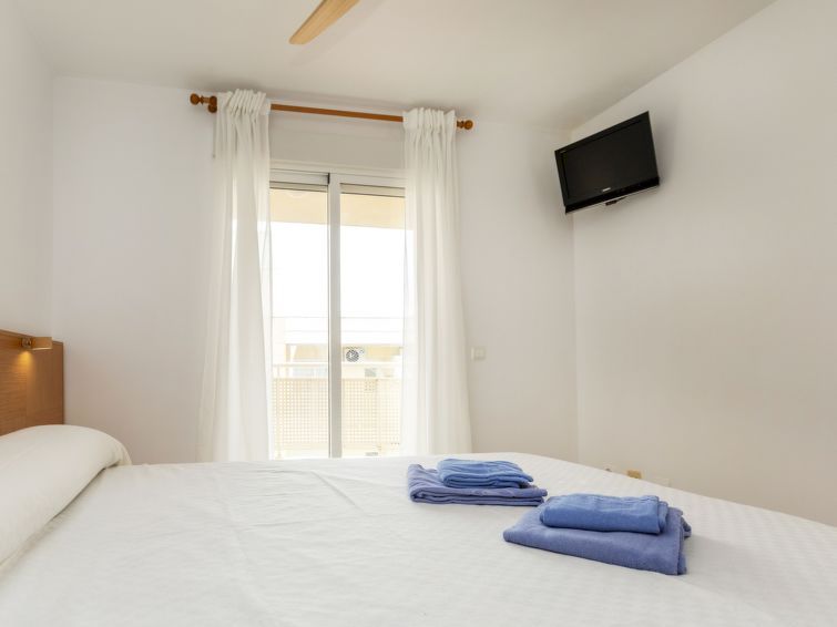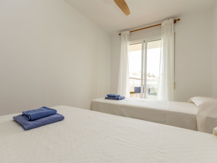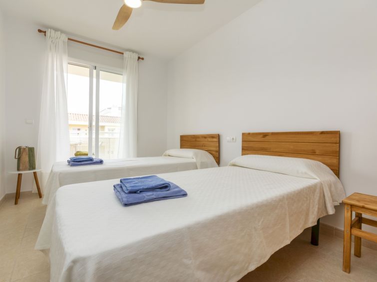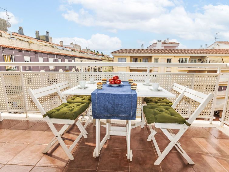 "Ed. Villa Magna", 3-room apartment 77 m2. Practical and beautiful furnishings: living/dining room with cable TV (flat screen), fan. Exit to the terrace. 1 room with 1 french bed (150 cm, length 200 cm), bath/WC, digital TV and fan. Exit to the terrace. 1 room with 2 beds (90 cm, length 190 cm), fan.