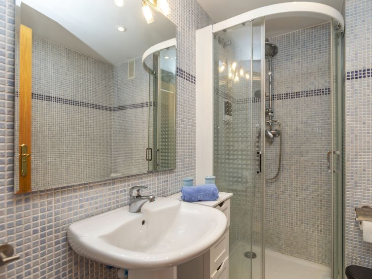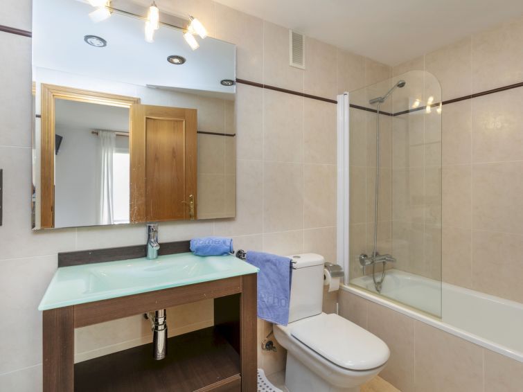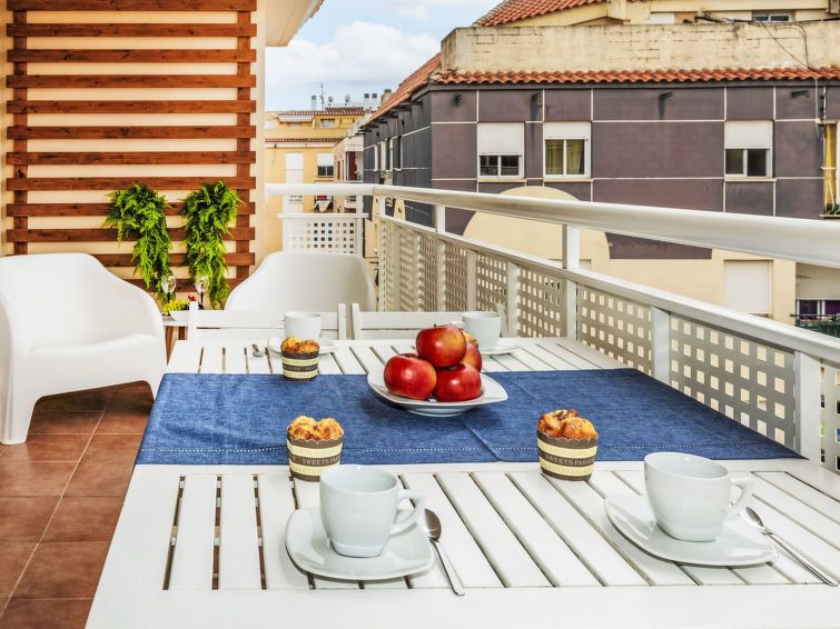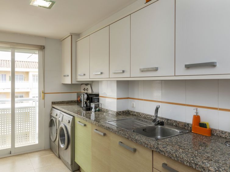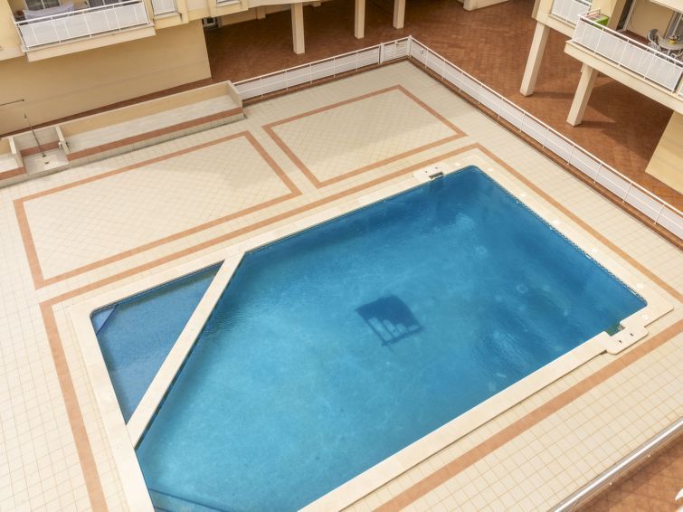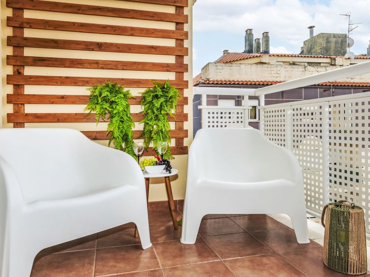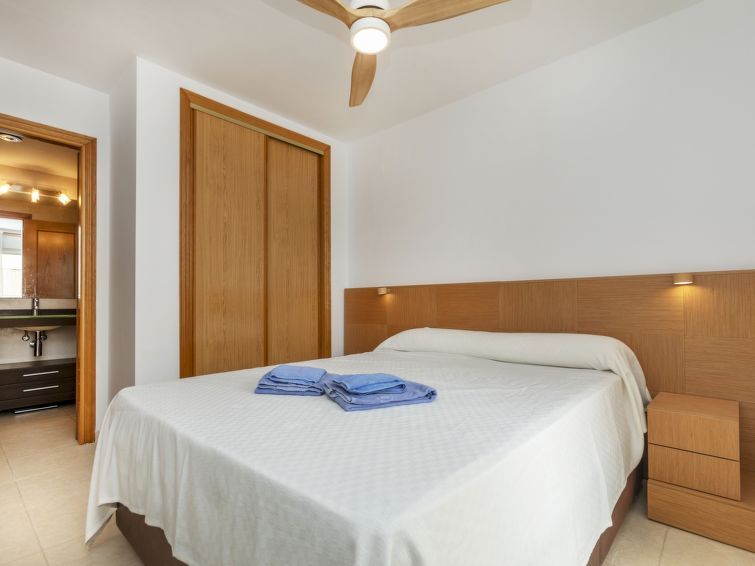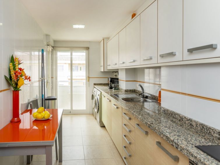 "Ed. Villa Magna", 3-room apartment 77 m2. Practical and beautiful furnishings: living/dining room with cable TV (flat screen), fan. Exit to the terrace. 1 room with 1 french bed (150 cm, length 200 cm), bath/WC, digital TV and fan. Exit to the terrace. 1 room with 2 beds (90 cm, length 190 cm), fan.