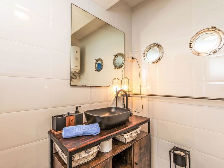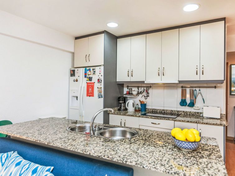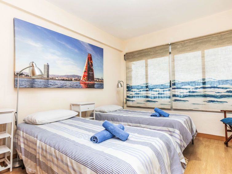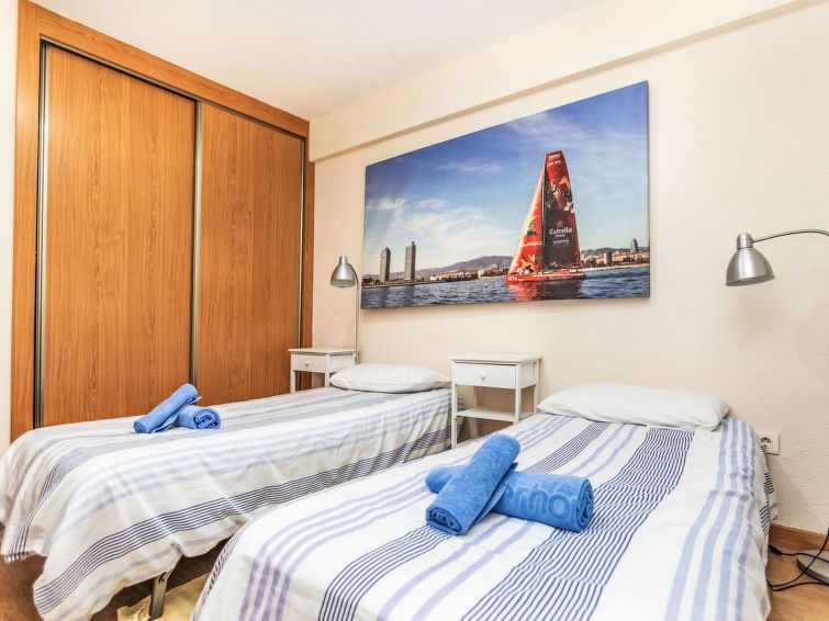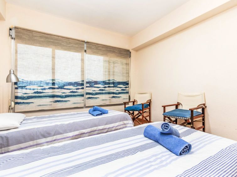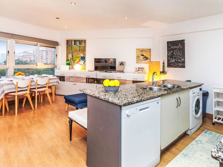 "Kivu - Torre la Sal", 3-room apartment 70 m2 on 6th floor. Fully renovated in 2018, practical and comfortable furnishings: living/dining room with dining table, digital TV, flat screen and fan. Exit to the terrace. 1 room with 1 french bed (2 x 90 cm, length 190 cm), shower/bidet/WC and fan.