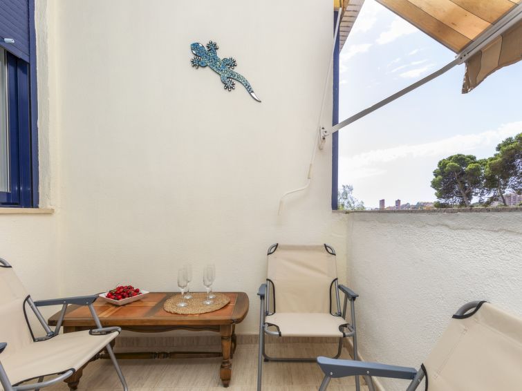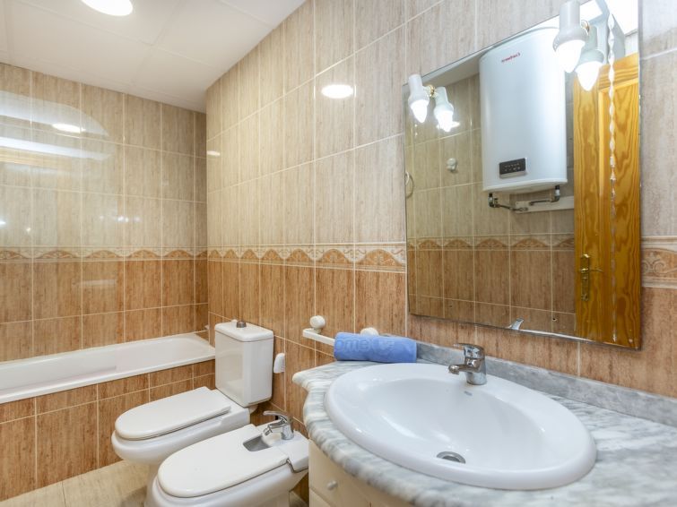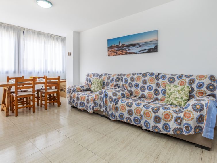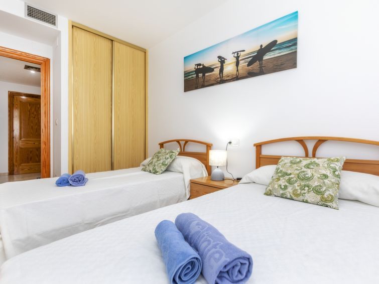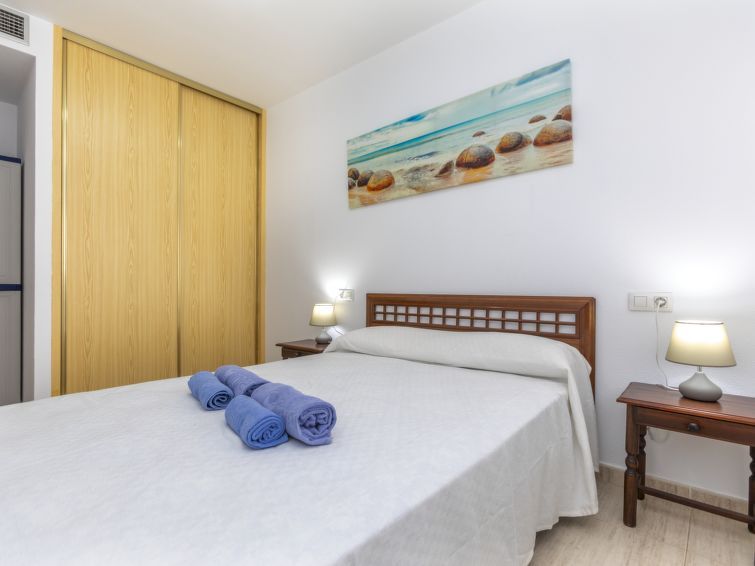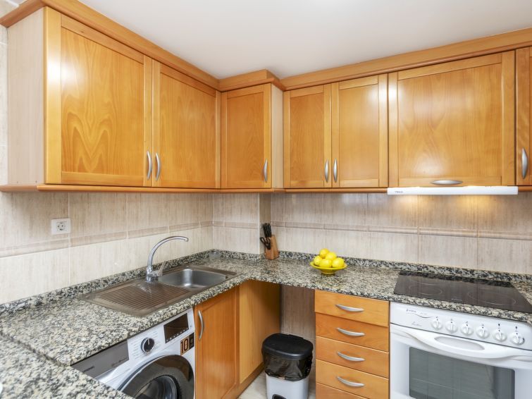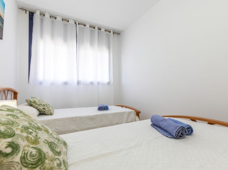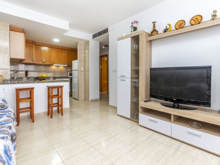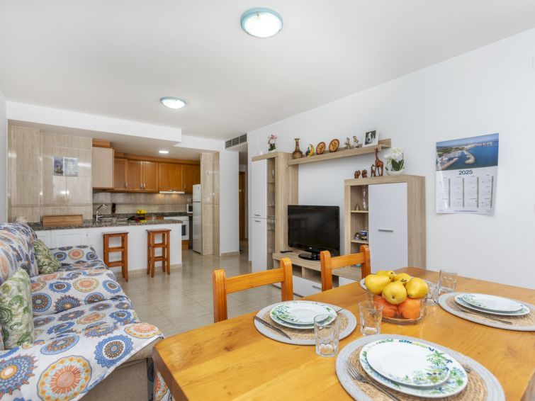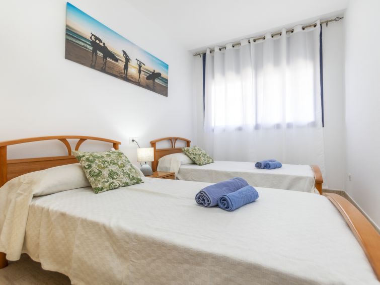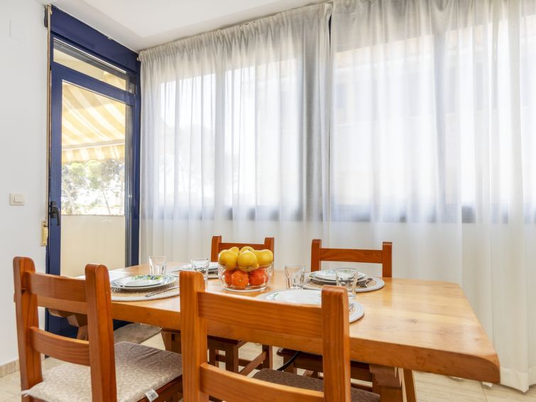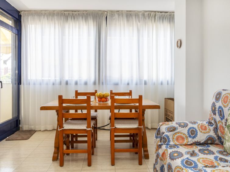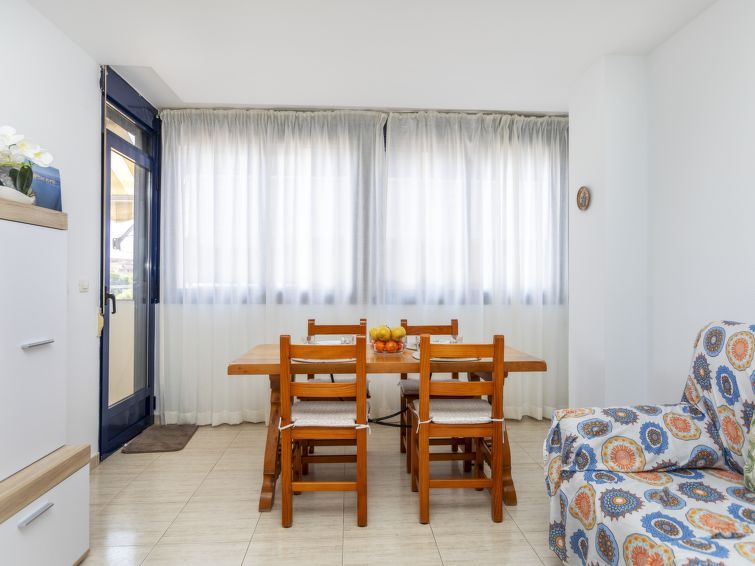 "La estación", 3-room apartment 70 m2. Practical and comfortable furnishings: living/dining room with dining table, digital TV and air conditioning. Exit to the terrace. 1 room with 1 french bed (135 cm, length 190 cm). 1 room with 2 beds (90 cm, length 190 cm). Kitchen-/living room (oven, 4 ceramic glass hob hotplates, toaster, microwave) with bar.