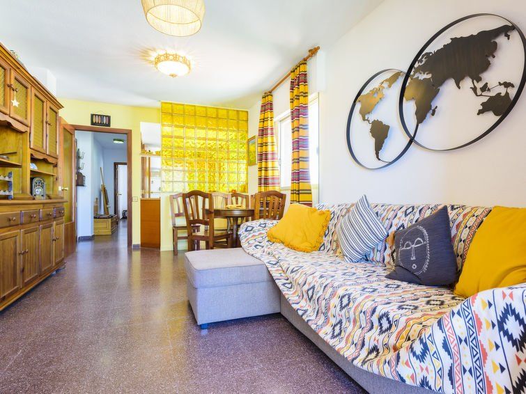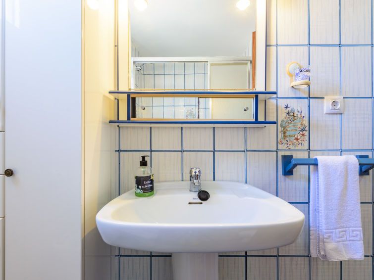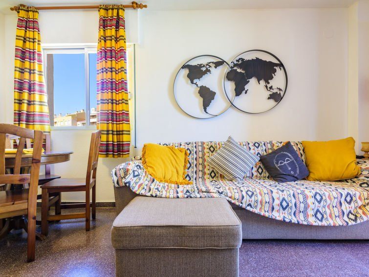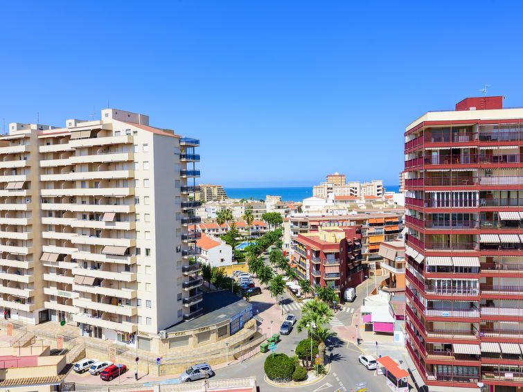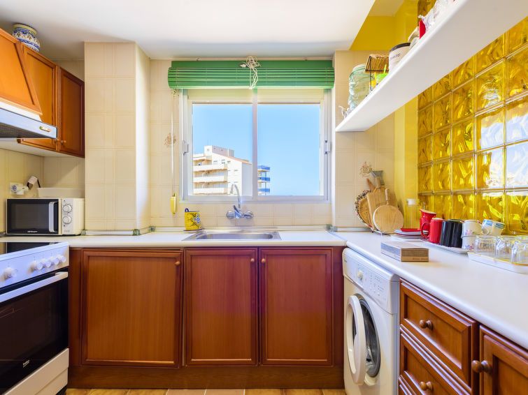 "Paradis", 2-room apartment 45 m2 on 9th floor. Practical and comfortable furnishings: living/dining room with dining table, digital TV and flat screen. Exit to the terrace. 1 room with 3 beds (90 cm, length 190 cm). Kitchen (oven, 4 ceramic glass hob hotplates, toaster, microwave).