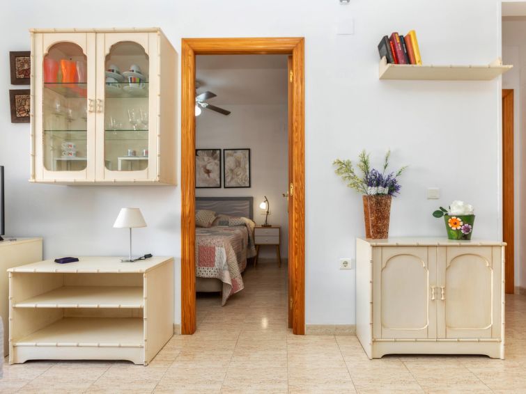 "Portofino IV", 3-room apartment 51 m2 on 1st floor. Practical and comfortable furnishings: living/dining room with dining table, digital TV, air conditioning, fan and boiler (75 litres). Exit to the terrace. 1 room with 1 french bed (135 cm, length 190 cm), fan. 1 room with 2 beds (90 cm, length 190 cm), fan.