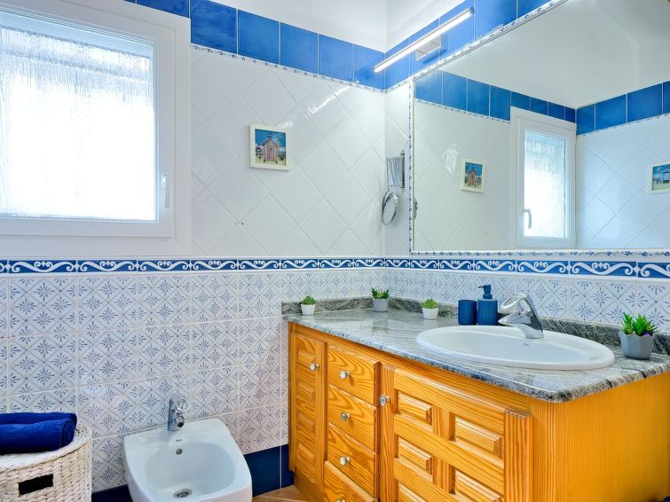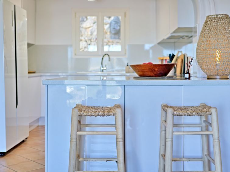 "Villa Karma", 3-room villa 100 m2. Spacious and bright, very comfortable and stylish furnishings: living/dining room with TV, air conditioning and forced-air heating. Exit to the terrace. 1 large room with 1 french bed (180 cm, length 200 cm), shower/WC (private) air conditioning, fan and forced-air heating.