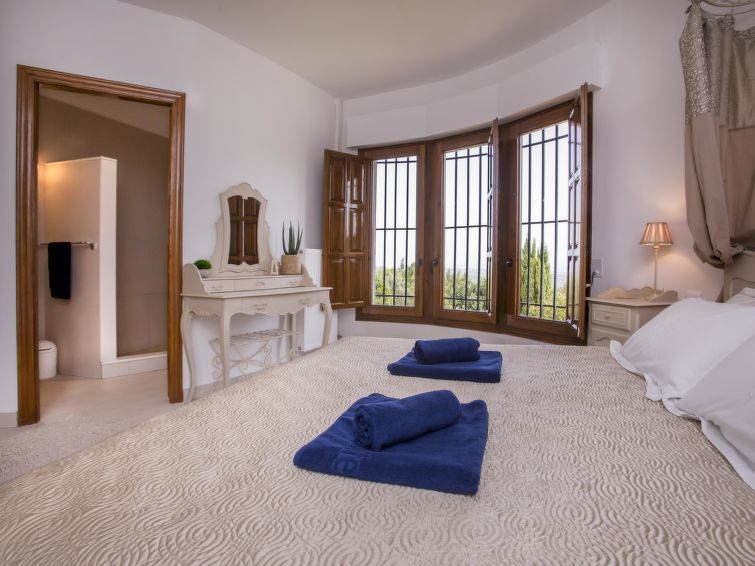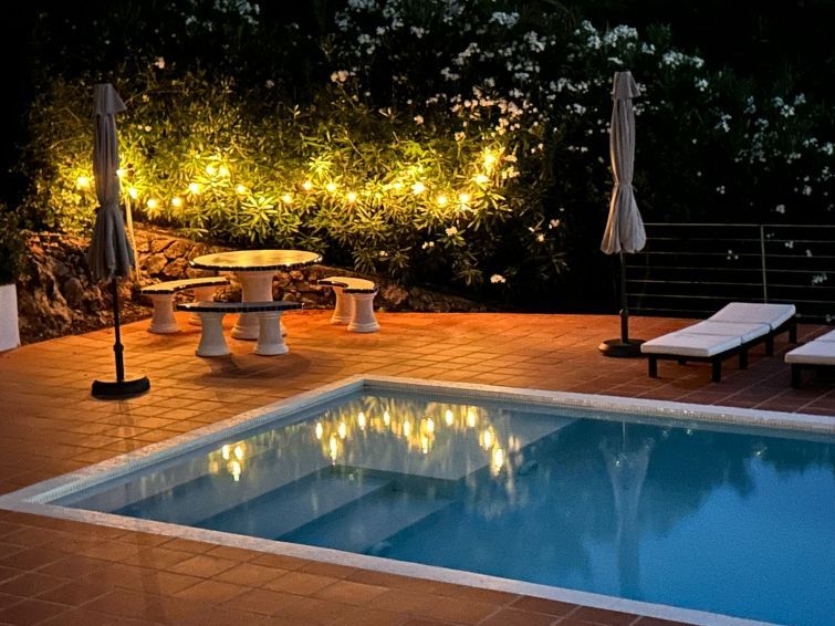 "Casa La Torre", 4-room house 140 m2 on 2 levels. Spacious and bright, very comfortable and stylish furnishings: living/dining room with satellite TV, air conditioning and forced-air heating. Exit to the patio, to the swimming pool. 1 room with 1 french bed (160 cm, length 200 cm), shower/WC, air conditioning and forced-air heating.
