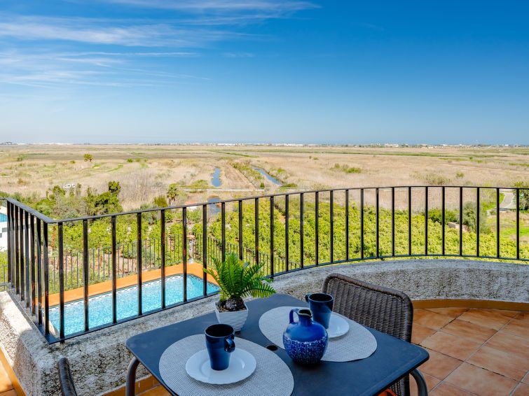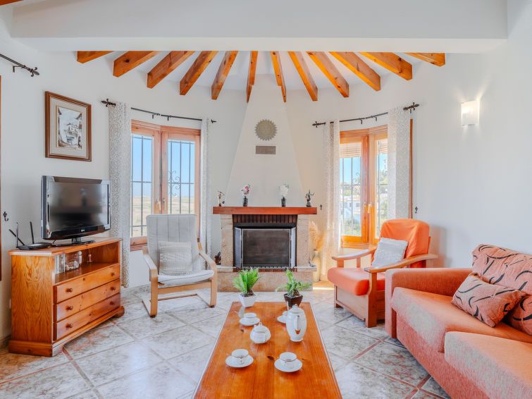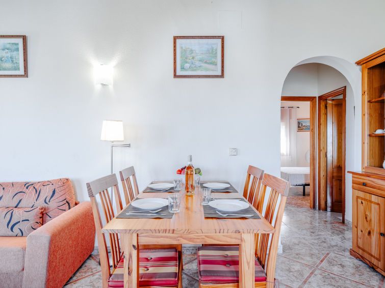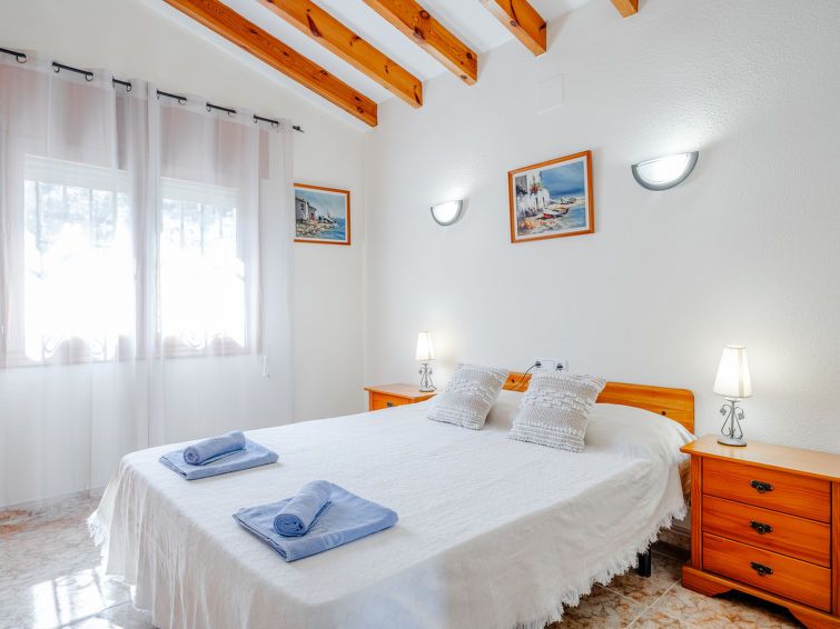"Los Delfines", 3-room house 100 m2. Spacious, very simple and cosy furnishings: living/dining room with digital TV, hi-fi system, DVD, air conditioning and forced-air heating. Exit to the terrace. 1 room with 1 french bed (180 cm, length 200 cm). 1 room with 1 double fold-away bed (160 cm, length 200 cm).