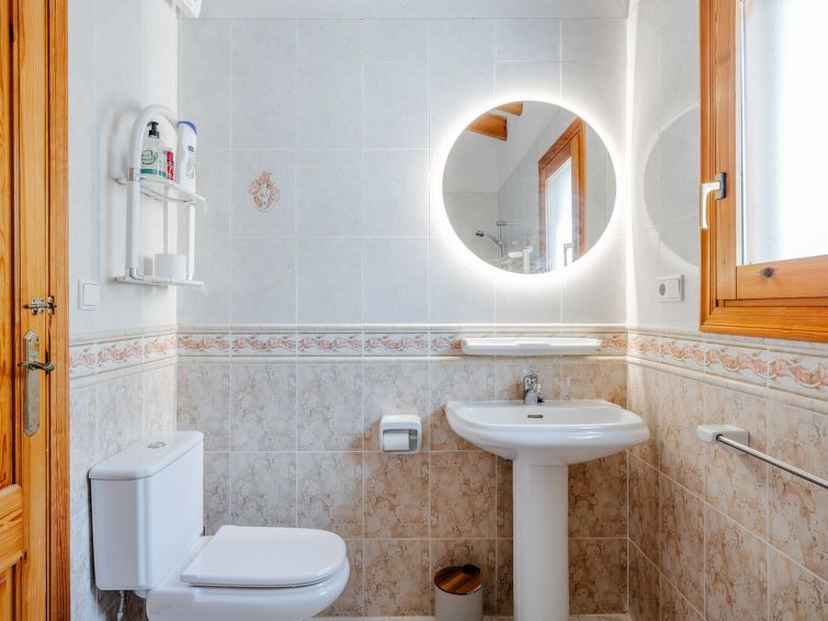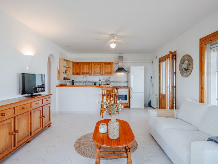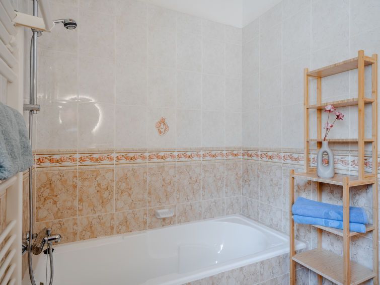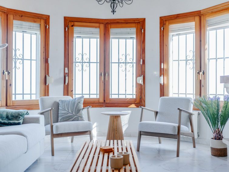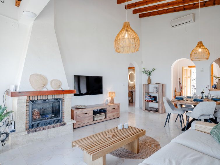 "Ticasa", 4-room house 200 m2 on 2 levels. Spacious and bright, very beautiful and stylish furnishings: living/dining room with digital TV, air conditioning, fan and forced-air heating. Exit to the terrace. 1 room with 1 french bed (180 cm, length 200 cm), shower/WC and fan. 1 room with 2 beds (90 cm, length 200 cm), fan.