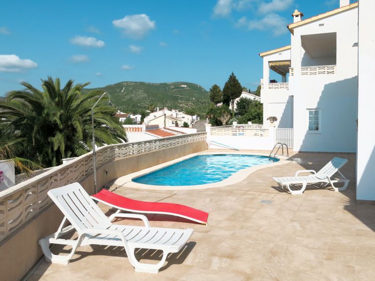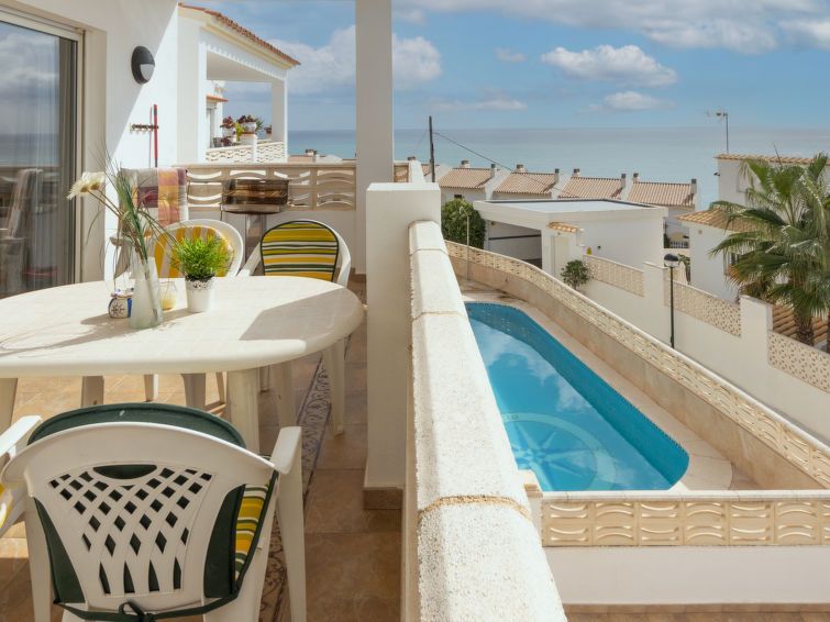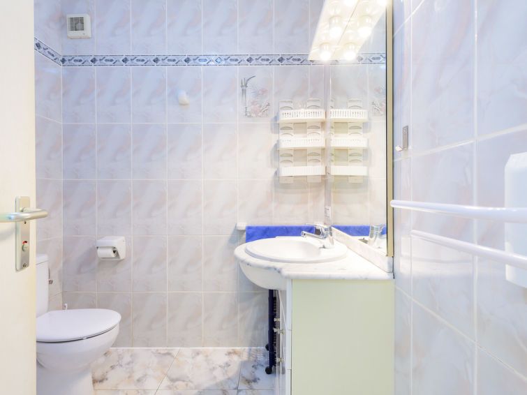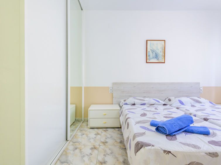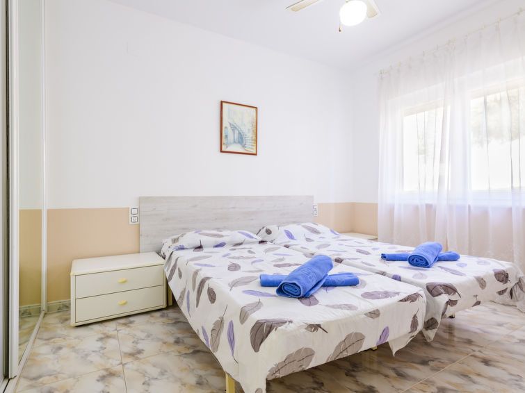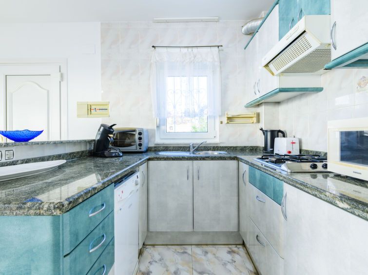 "Escudos", 3-room apartment 60 m2, south facing position. Practical furnishings: living/sleeping room with 1 sleeping facility, dining table, satellite TV and fan. Exit to the terrace. 1 room with 2 beds (90 cm, length 190 cm). 1 room with 2 sleeping facilities. Open kitchen (dishwasher, 4 gas rings, toaster, kettle, microwave, freezer, electric coffee machine, Capsules for coffee machine (Senseo) extra).