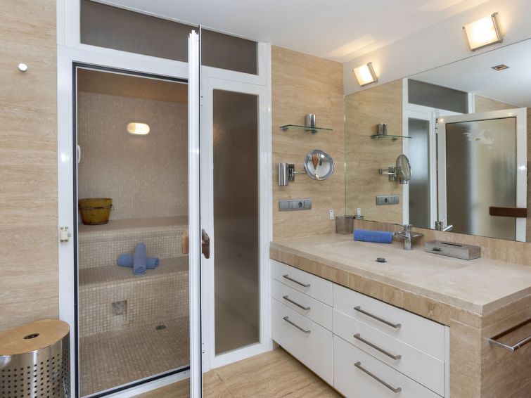 "Finca Villa Roig", 7-room villa 535 m2 on 3 levels. Object suitable for 10 adults + 2 children. Spacious and bright, comfortable and tasteful furnishings: living/dining room with open-hearth fireplace (only for decoration), dining table, digital TV, gas heating, air conditioning, forced-air heating and electric shutters.