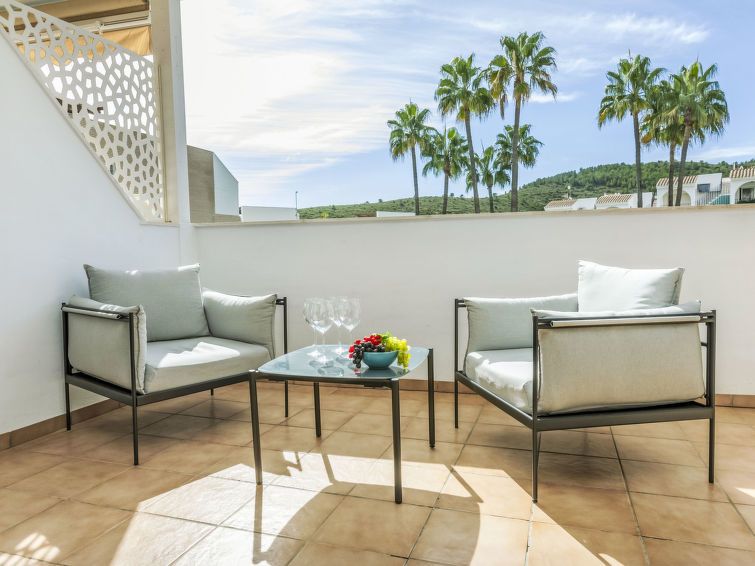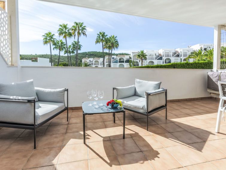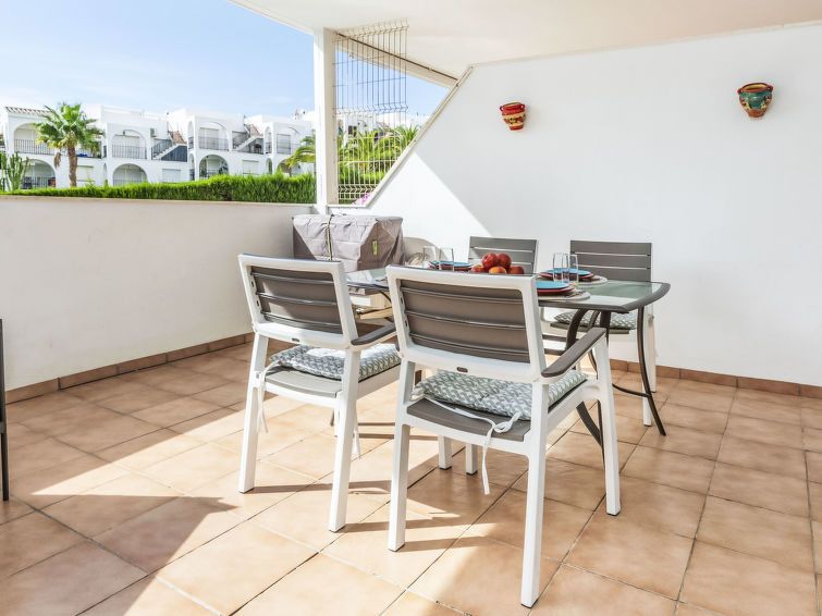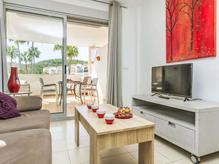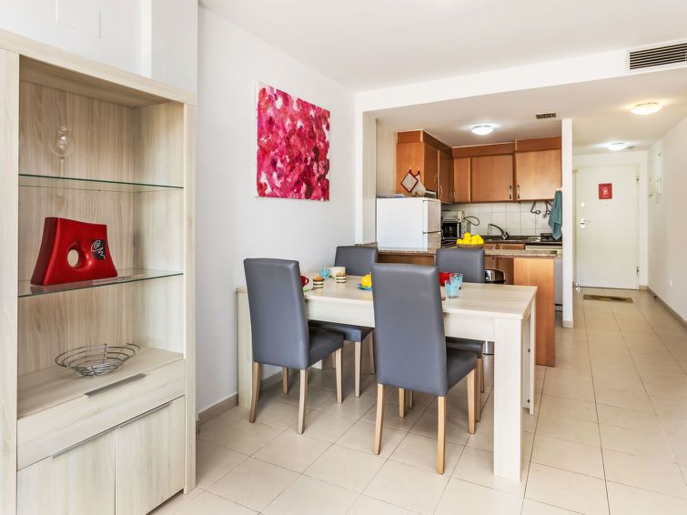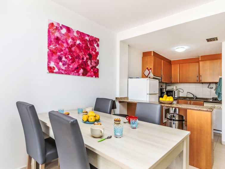 "Font Nova", 3-room apartment 57 m2. Practical and comfortable furnishings: living/dining room with dining table, digital TV and air conditioning. Exit to the terrace. 2 rooms, each room with 1 french bed (1 x 160 cm, length 190 cm), air conditioning. Open kitchen (oven, dishwasher, 4 ceramic glass hob hotplates, toaster, microwave, freezer, electric coffee machine).