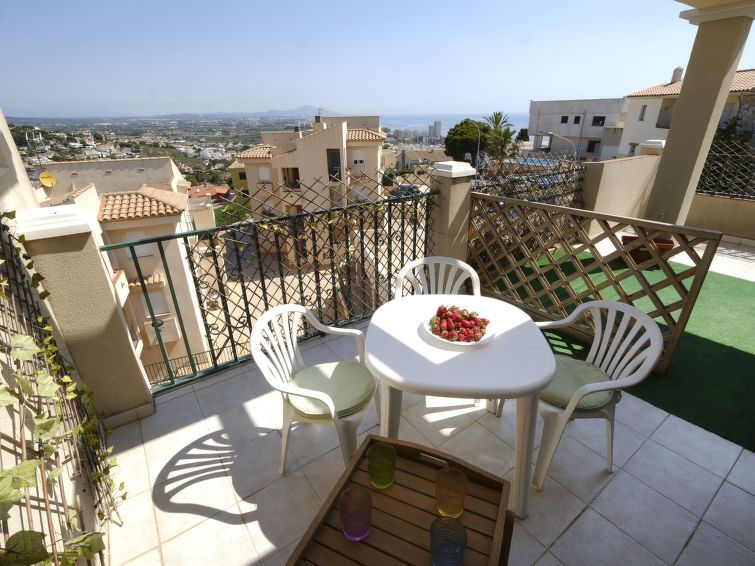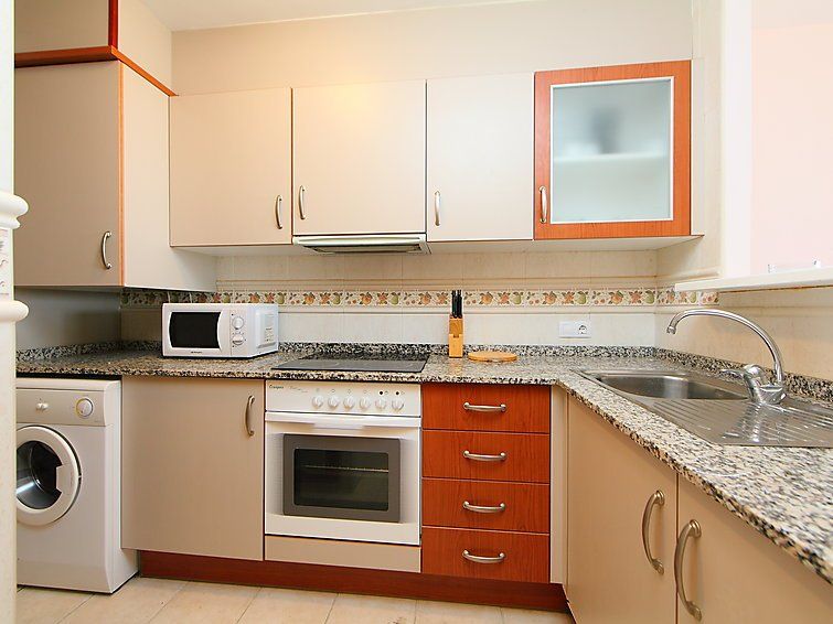 "Urgeles", 3-room apartment 68 m2. Comfortable furnishings: living/dining room. Exit to the balcony. 1 room with 1 french bed. 1 room with 2 beds. Open kitchen (oven, 4 ceramic glass hob hotplates, microwave, freezer). Shower/WC. View of the sea and the resort. Facilities: washing machine.