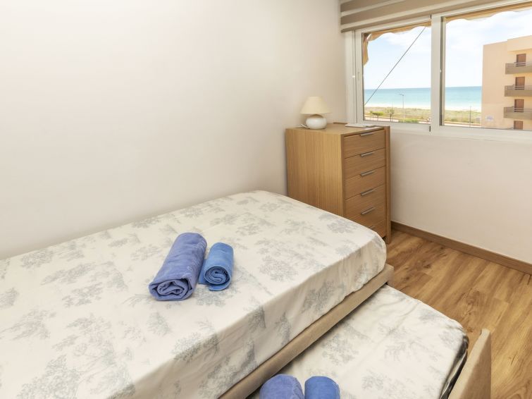 "Jaca", 3-room apartment 60 m2 on 3rd floor. Renovated in 2025, practical and comfortable furnishings: living/dining room with dining table, digital TV, air conditioning and forced-air heating. Exit to the terrace. 1 room with 1 french bed (1 x 135 cm, length 190 cm), fan. 1 room with 2 beds (90 cm, length 190 cm), fan.