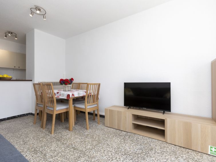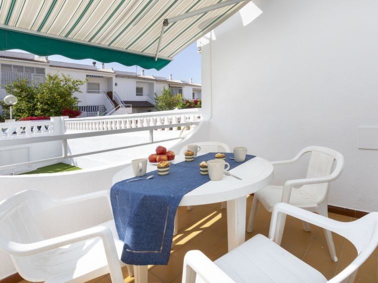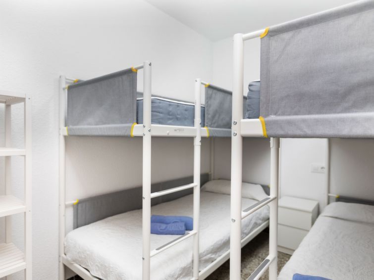 "Peñismar Garden", 3-room apartment 56 m2, on the ground floor. Partly renovated in 2023, practical furnishings: living/dining room with digital TV and air conditioning. Exit to the patio. 1 room with 2 x 2 bunk beds (90 cm, length 190 cm). 1 room with 1 french bed (135 cm, length 190 cm).