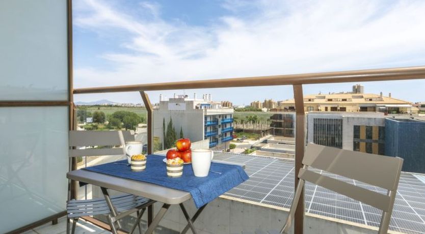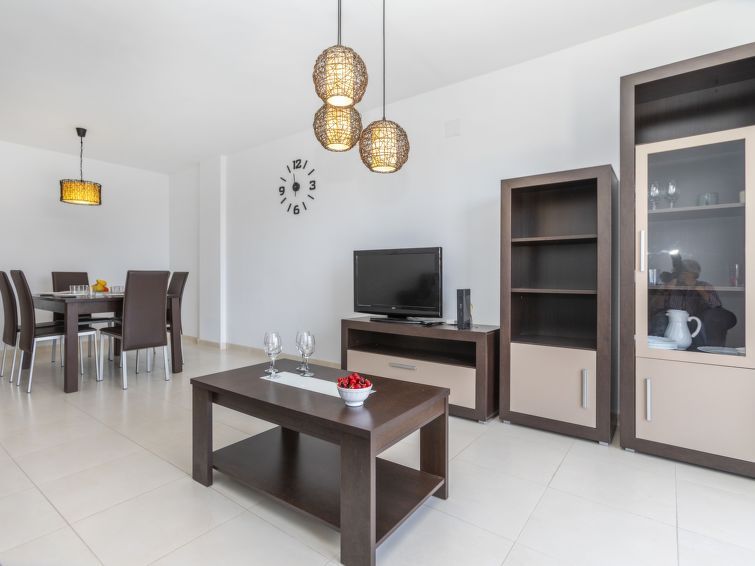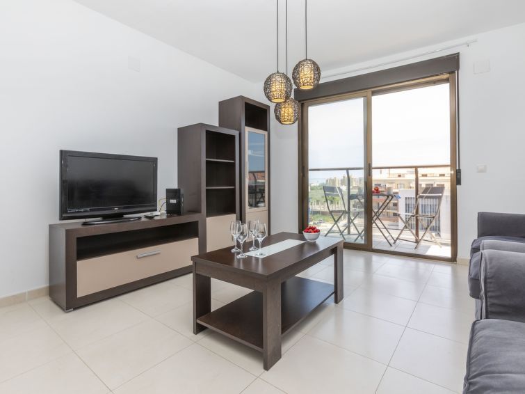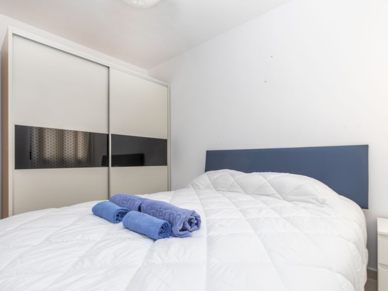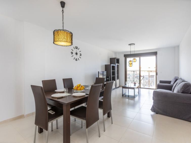 "Puntarro", 4-room apartment 100 m2. In 2024, practical and comfortable furnishings: living/dining room with dining table, digital TV, air conditioning and forced-air heating. Exit to the balcony. 1 room with 1 french bed (1 x 150 cm, length 190 cm), bath/WC, air conditioning and forced-air heating.