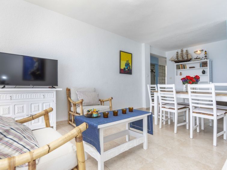 "Torre Hirta", 4-room apartment 87 m2. Comfortable furnishings: living/dining room with satellite TV, international TV channels and fan. Exit to the terrace. 2 rooms, each room with 2 beds (90 cm, length 190 cm). 1 room with 1 french bed (1 x 135 cm, length 190 cm), separate WC. Kitchen (4 ceramic glass hob hotplates, toaster, kettle, microwave, freezer, electric coffee machine).