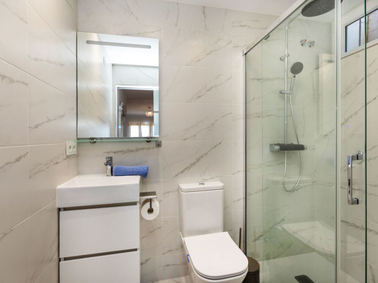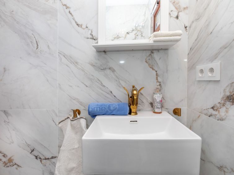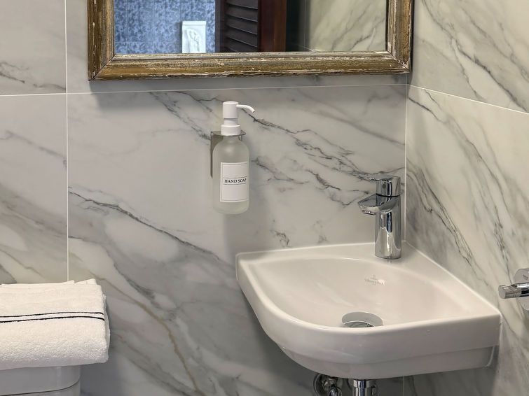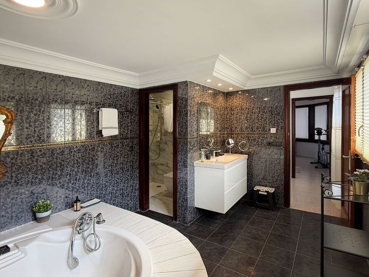"Villa Bellevue", 7-room villa 300 m2 on 3 levels. Renovated in 2024, comfortable furnishings: 1 room with 1 bed (90 cm, length 200 cm), 1 double bed (1 x 160 cm, length 200 cm), TV, air conditioning and forced-air heating. Shower/WC. Upper floor: living/dining room with open-hearth fireplace, dining table, TV, air conditioning and forced-air heating.