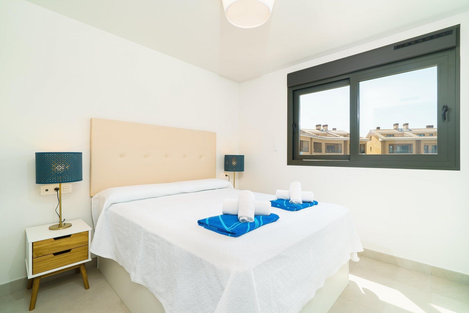 A stone's throw from cafes and restaurants, this apartment is perched above a communal pool, ideal for cooling off after a beach day 200 metres from here at the Platja de l'Arenal. Out on the private balcony, everyone can escape the Mediterranean sunshine and enjoy an alfresco breakfast or watch sleepy sunsets over the townscape together. Idyllic Jávea caters to all kinds of holidaymakers, offering bouncing seaside bars and historical sights, plus a national park a short drive away.