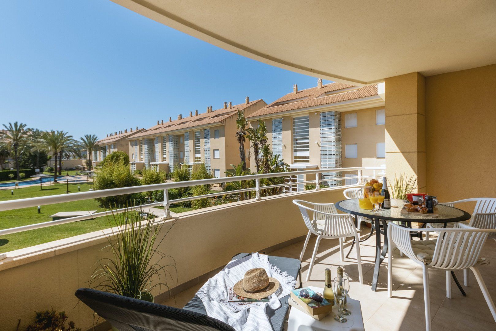 We recommend you start sunny days here by enjoying a coffee on your private balcony while you gaze out at the lush greenery surrounding you, and the mountains in the distance. Cook up some huevos rotos and dine alfresco on your balcony dining set as you watch the sun come up. When the midday heat arrives, head down to the shared pool for a refreshing dip. Enjoy a long walk around the gardens, complete with a lovely pond. Head out to explore the quaint streets of this coastal town, and head to a beach bar for a cocktail. In the evenings, wind down on the balcony with a sundowner in hand, or find a local restaurant for delicious paella and sangria.