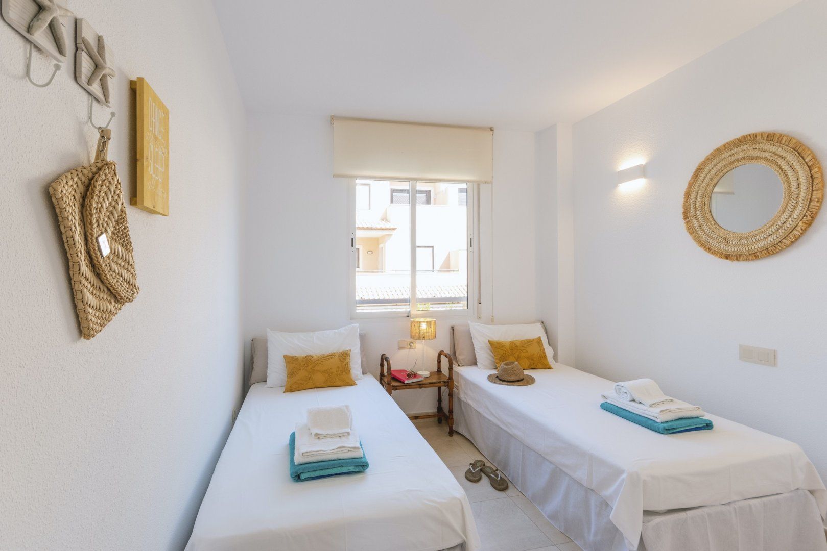 Enjoy a stellar stay at this contemporary apartment, based just a few hundred metres from Arenal beach, and close to plenty of vibrant bars and restaurants that make this area so sought-after. This home offers calming neutral interiors, with arty touches that make it feel super stylish, and modern amenities to make your stay as easy as can be. Based on a fantastic gated complex, staying here means you’ll have access to the lovely outdoor shared pool, as well as some idyllic gardens that are very inviting for an afternoon stroll.
