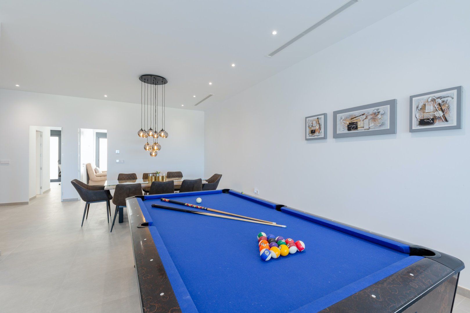 The interior, however, is just as sublime, as minimalist designs showcase a laid-back space packed with style and amenities. This villa covers all bases – there’s a basement kitted out with a playroom and plenty of space for the little ones to run around, a pool table for the teens of the group to keep entertained, and private pockets for adult socialisation – we think the terrace chairs are an idyllic spot to share sangrias at sunset. And when the whole group wants to come together, there’s a huge living room for games nights, though we expect the infinity pool takes the top spot.