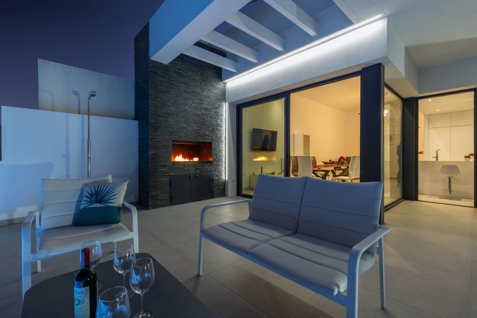 You'll likely find yourselves stretched out by the infinity pool much of the time. And with sleek sun loungers, a sumptuous outdoor lounge and a barbecue, as well as an outdoor fireplace that glows into the dark hours of the evening – we can see exactly why you'd want to spend the majority of your stay out here.